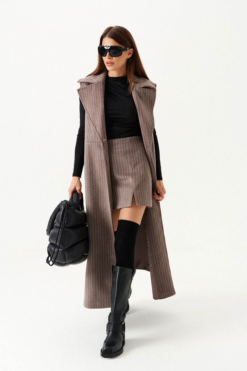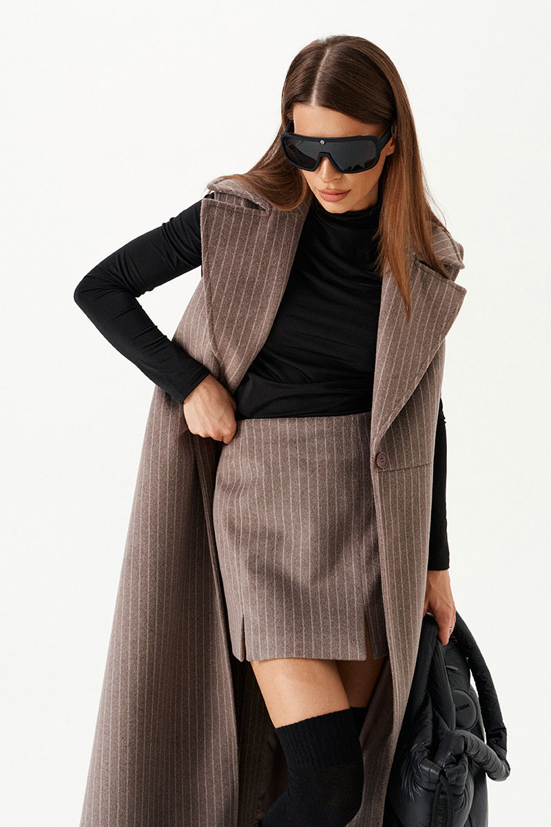 Комплект женский 2-предметный из трикотажного полотна, состоящий из жилета и юбки.