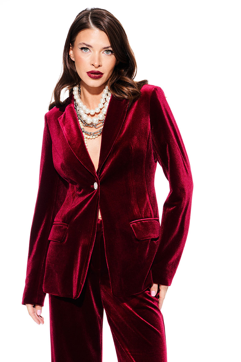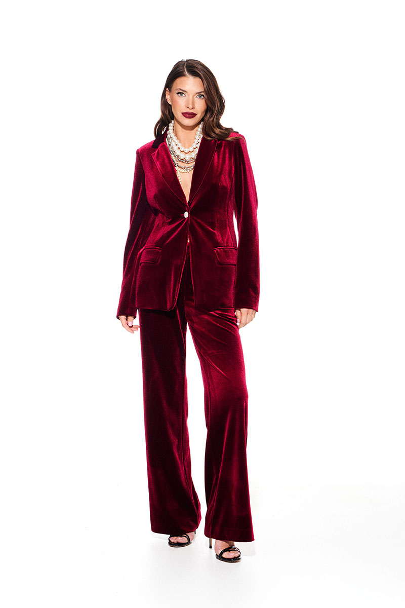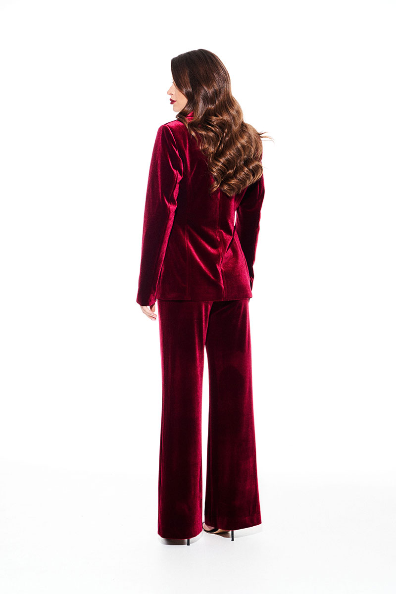 Костюм из бархата на трикотажной основе, 2-предметный, состоящий из жакета и брюк.