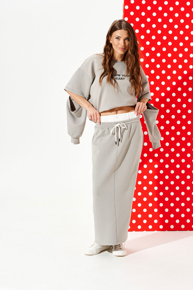 Комплект из трикотажного полотна, 2-предметный, состоящий из свитшота и юбки.