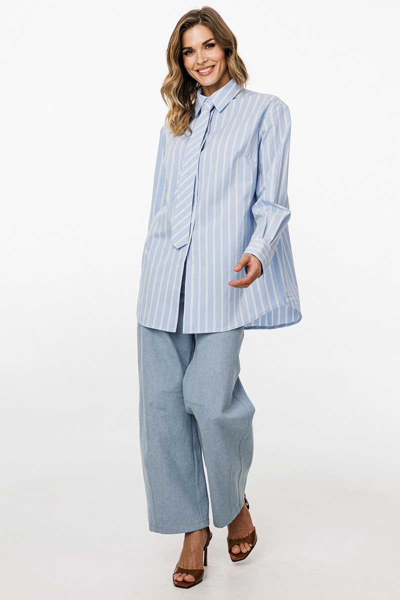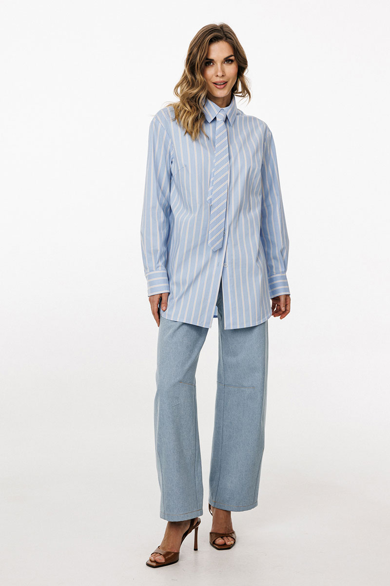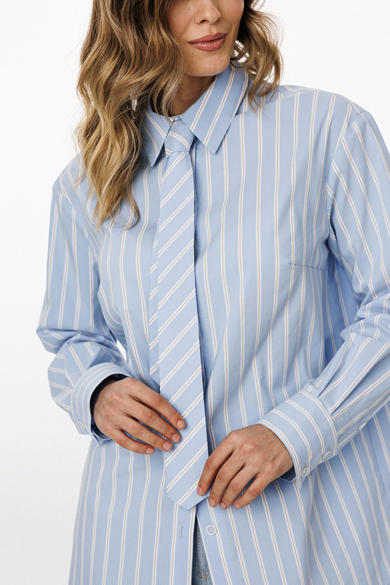 Галстук выполнен из плательно-блузочной ткани в полоску.