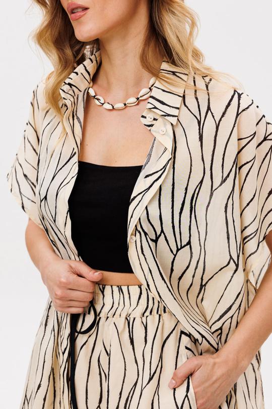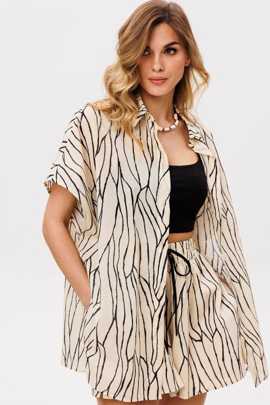 Комплект: блузка + шорты. Комплект выполнен из плательно-блузочной ткани с принтом.