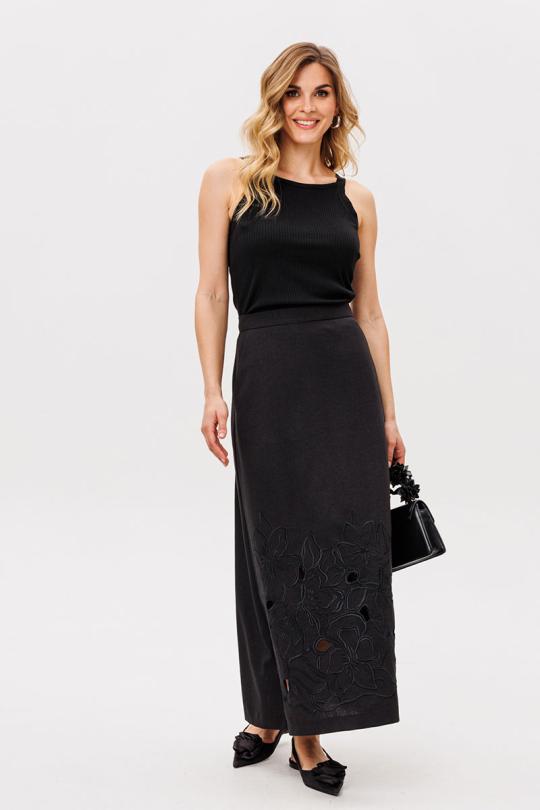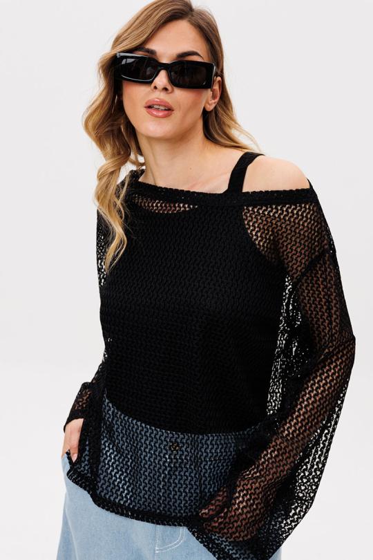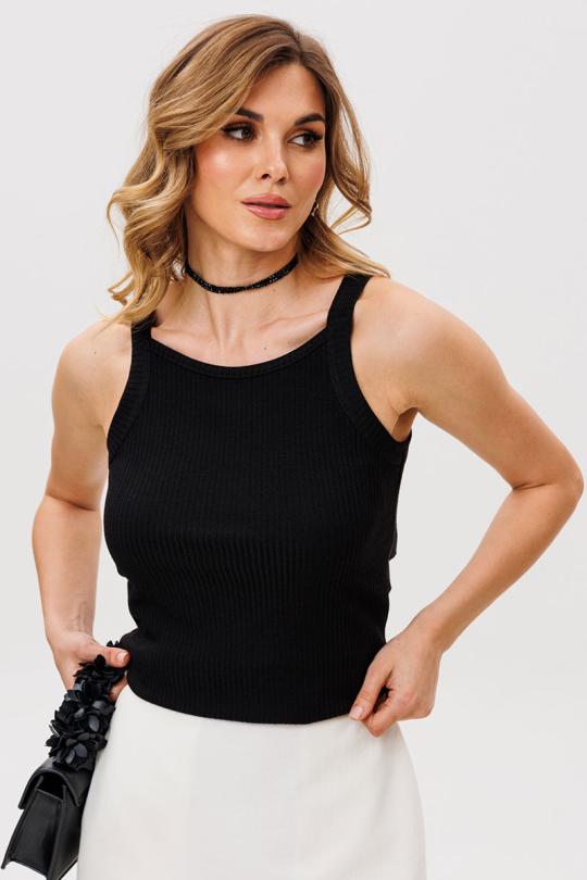 Джемпер выполнен из трикотажа в рубчик. Джемпер приталенный, длиной выше линии бедер. Перед и спинка цельные. Горловина переда и спинки окантованы.