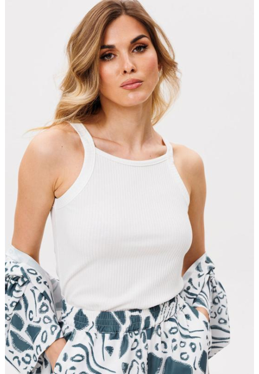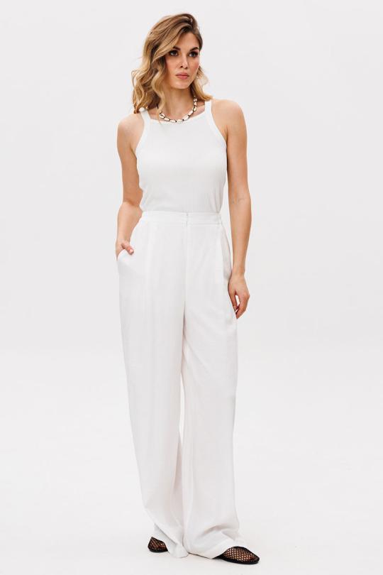 Джемпер выполнен из трикотажа в рубчик. Джемпер приталенный, длиной выше линии бедер. Перед и спинка цельные. Горловина переда и спинки окантованы.