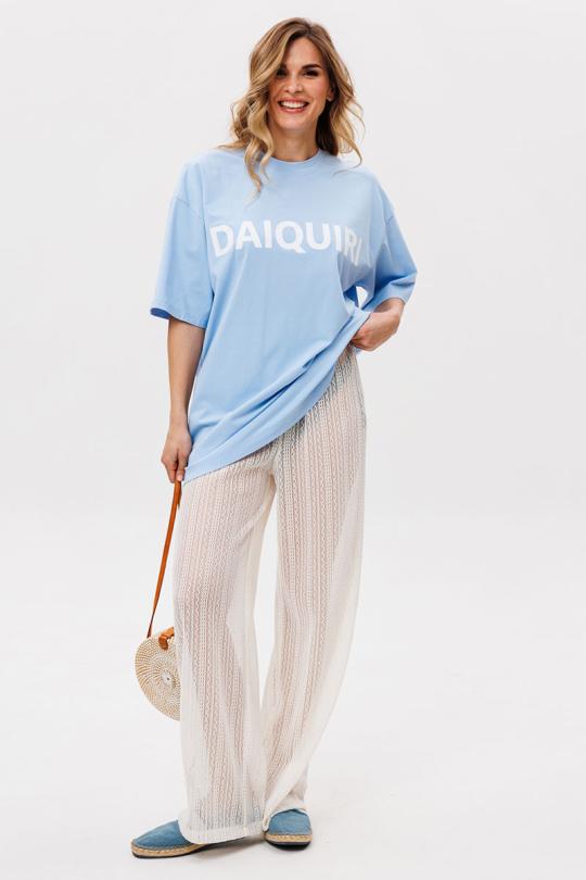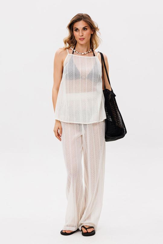 Брюки выполнены из сетки с рисунком. Брюки прямого силуэта, длиной в пол, на притачном поясе с эластичной тесьмой.