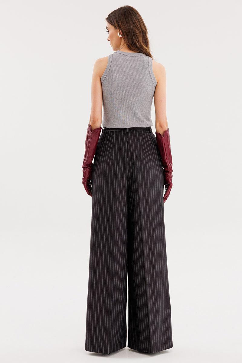 Джемпер выполнен из трикотажного полотна в рубчик. Джемпер приталенного силуэта, длиной выше линии бедер. Перед и спинка цельные. Горловина округлой формы. Плечевой шов заужен. Горловина и пройма обработаны бейками из основной ткани.