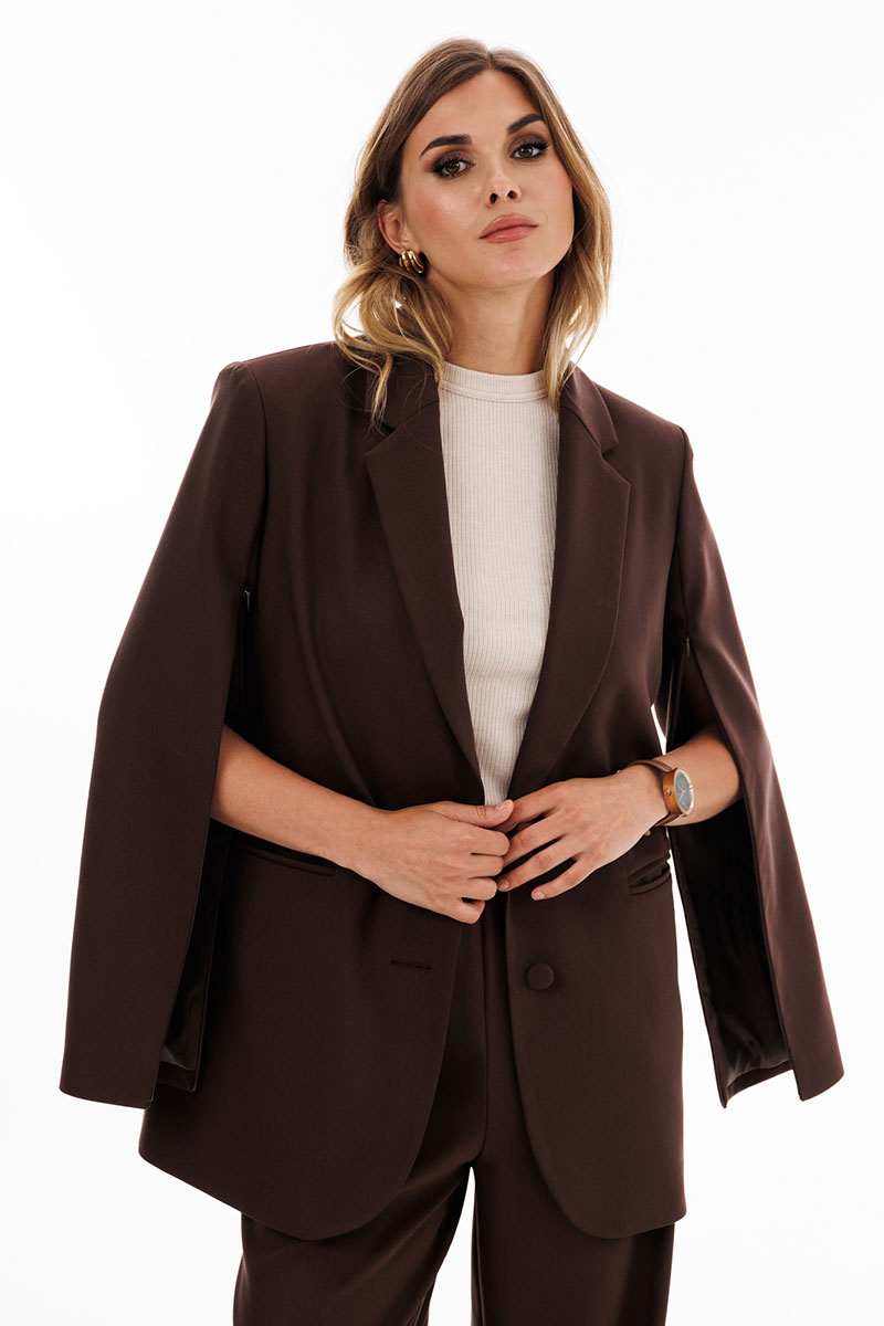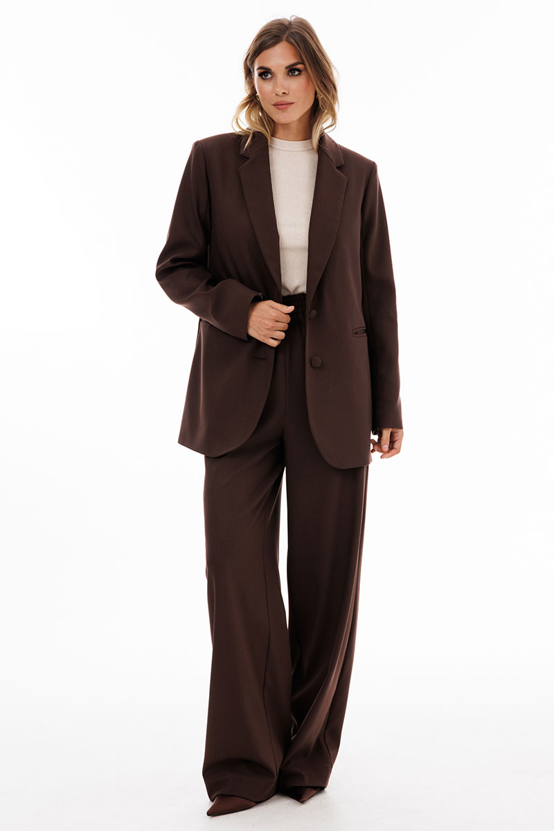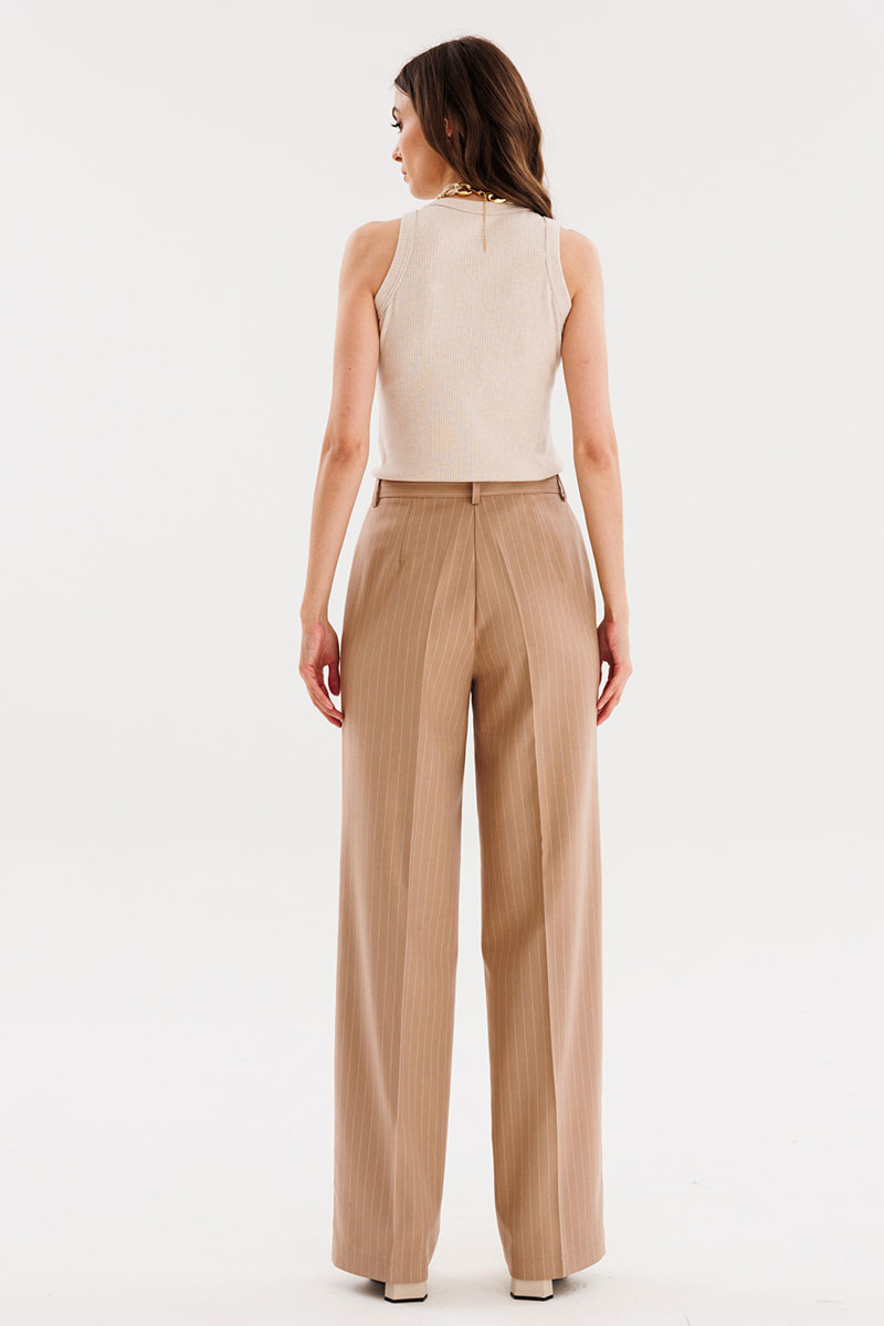 Джемпер выполнен из трикотажного полотна в рубчик. Джемпер приталенного силуэта, длиной выше линии бедер. Перед и спинка цельные. Горловина округлой формы. Плечевой шов заужен. Горловина и пройма обработаны бейками из основной ткани.