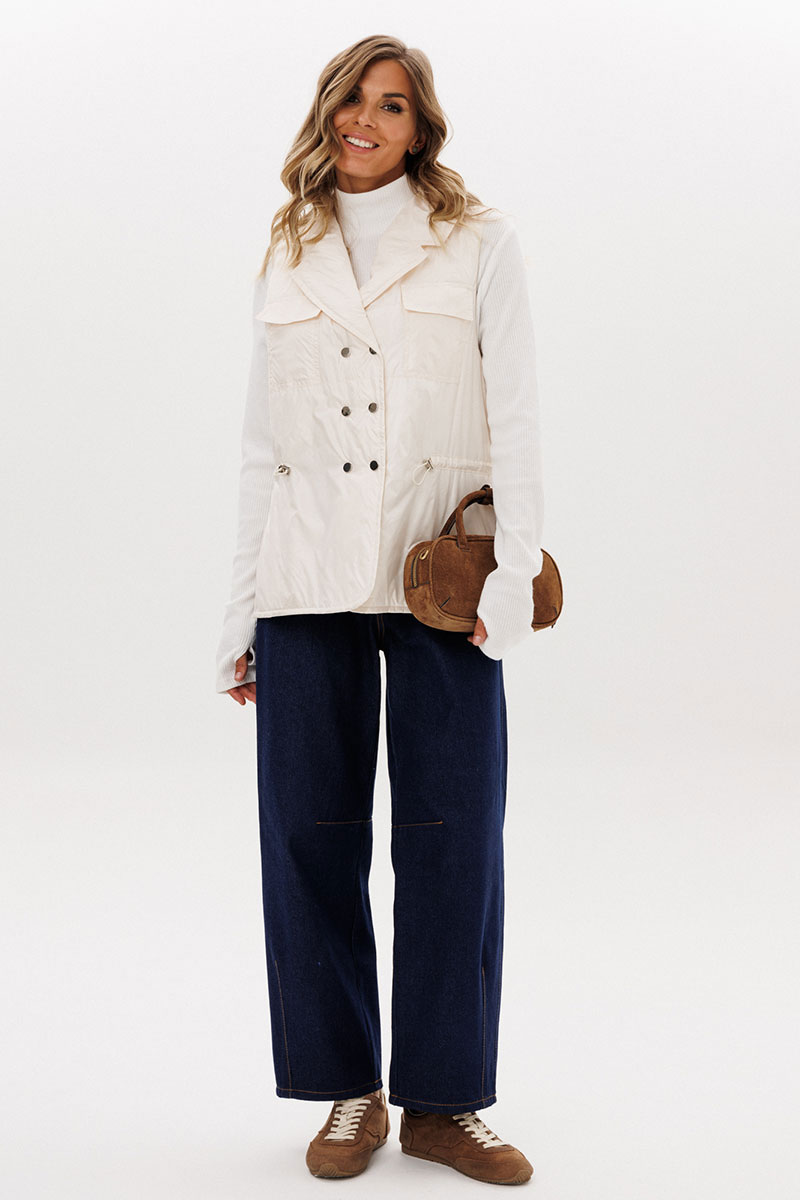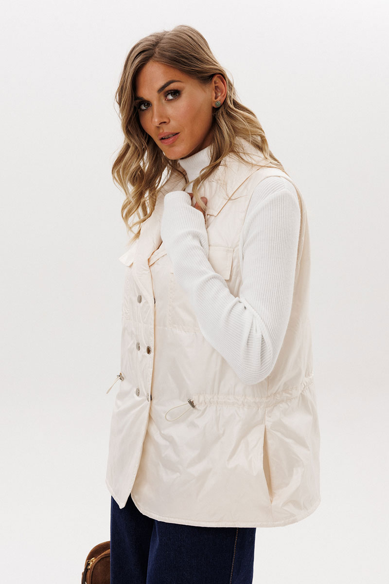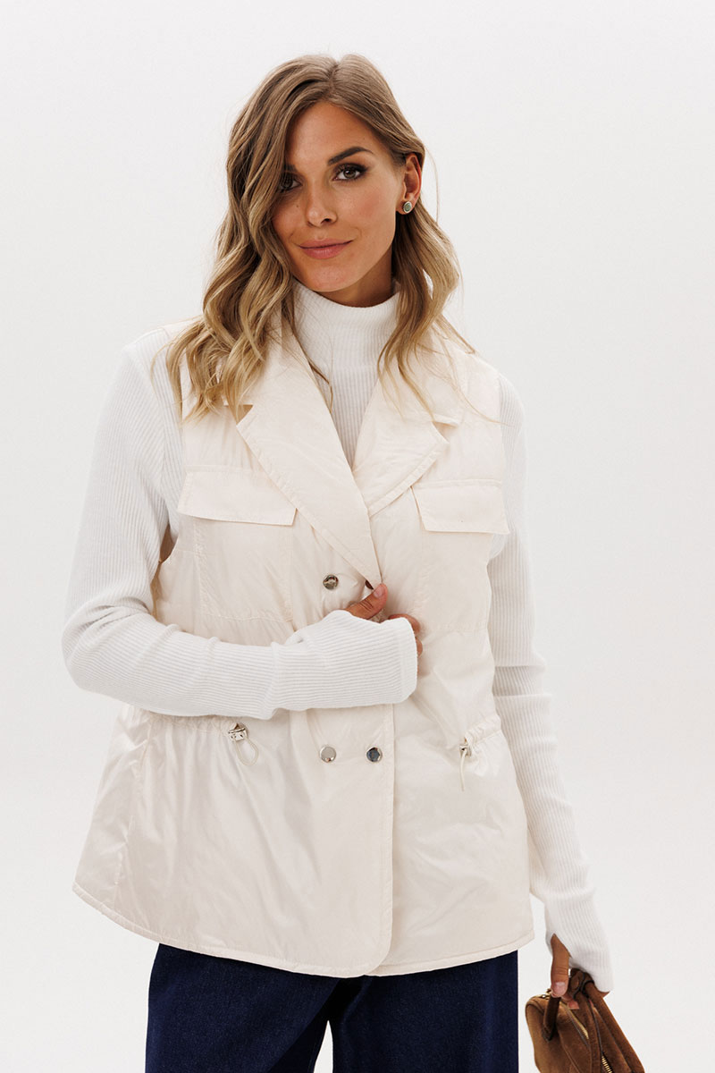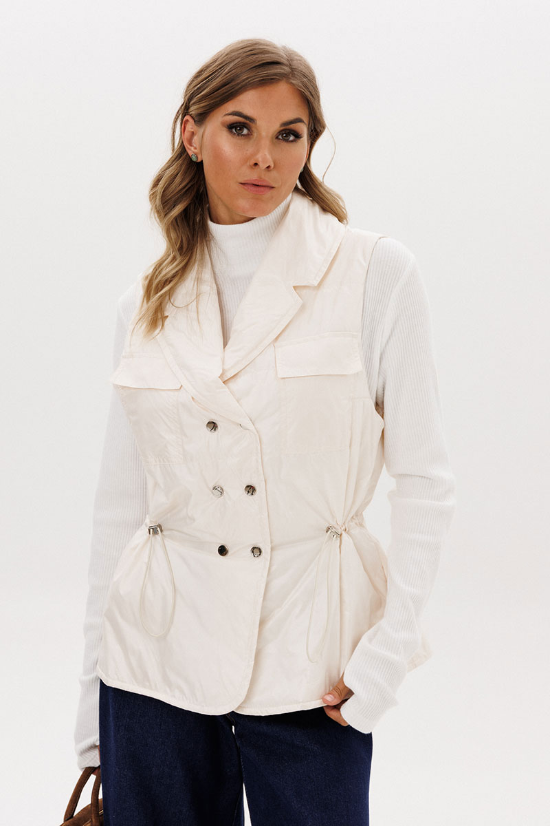 тесьма с фиксаторами. Жилетка на подкладке из основной ткани.