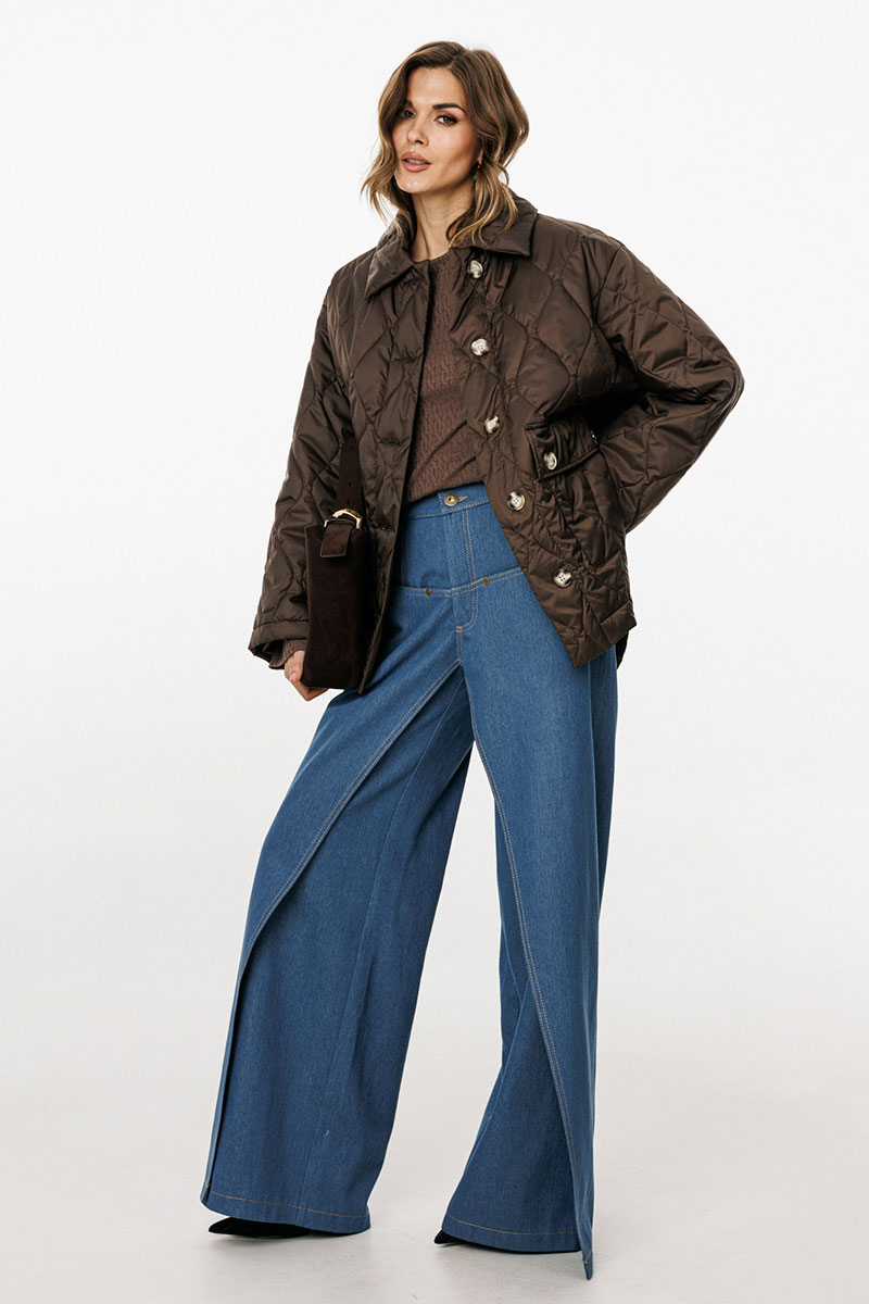 карманы с клапанами. Спинка цельная. Воротник стояче-отложной. Рукав втачной, двухшовный. Плечевой шов спущен. Пройма углублена. Спинка длиннее переда. В боковых швах фигурные