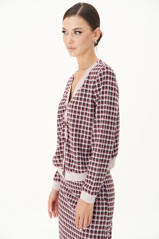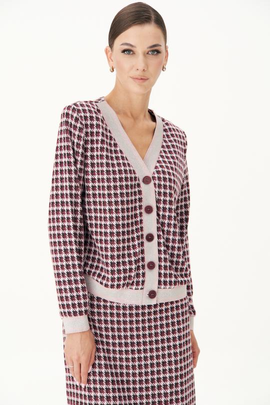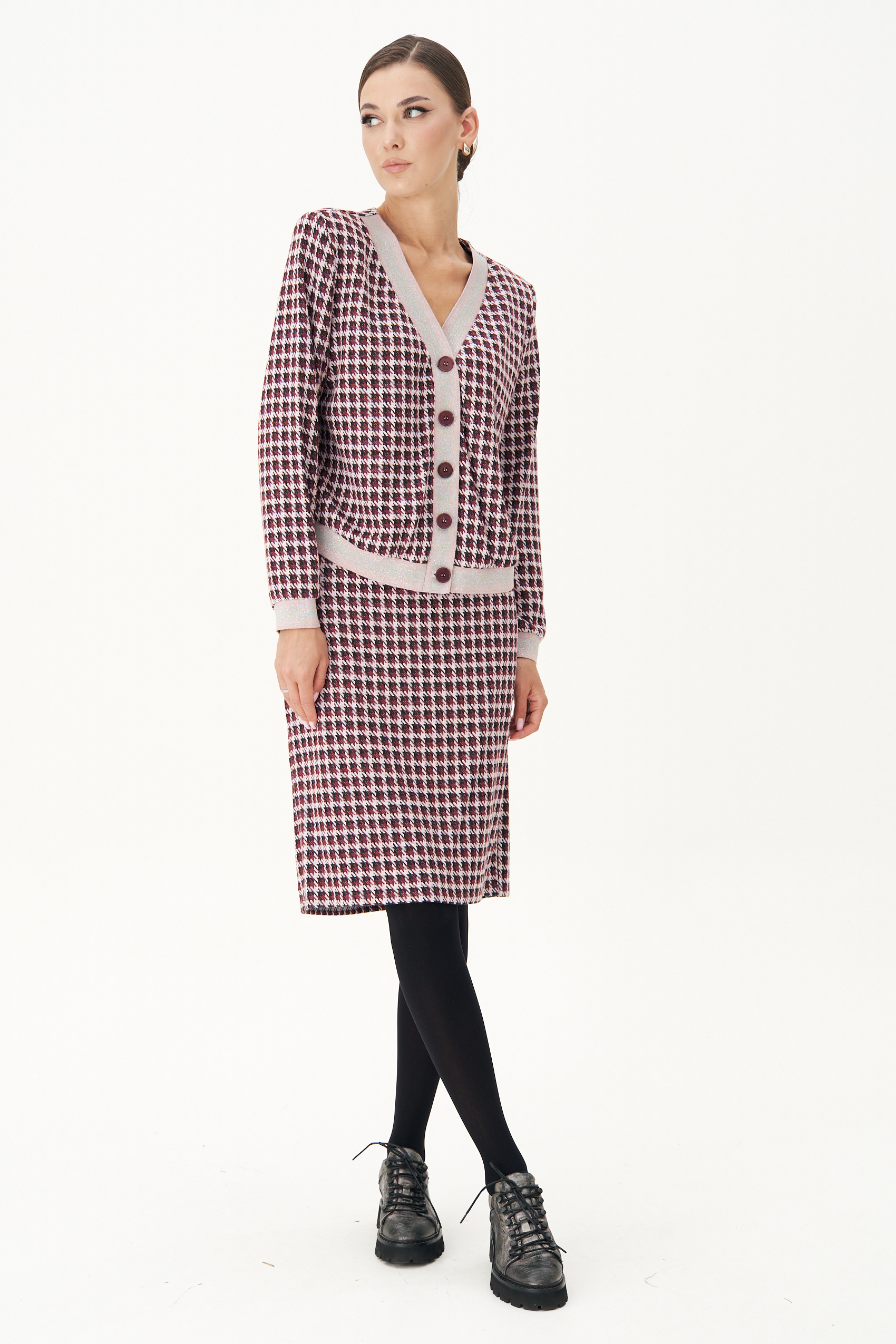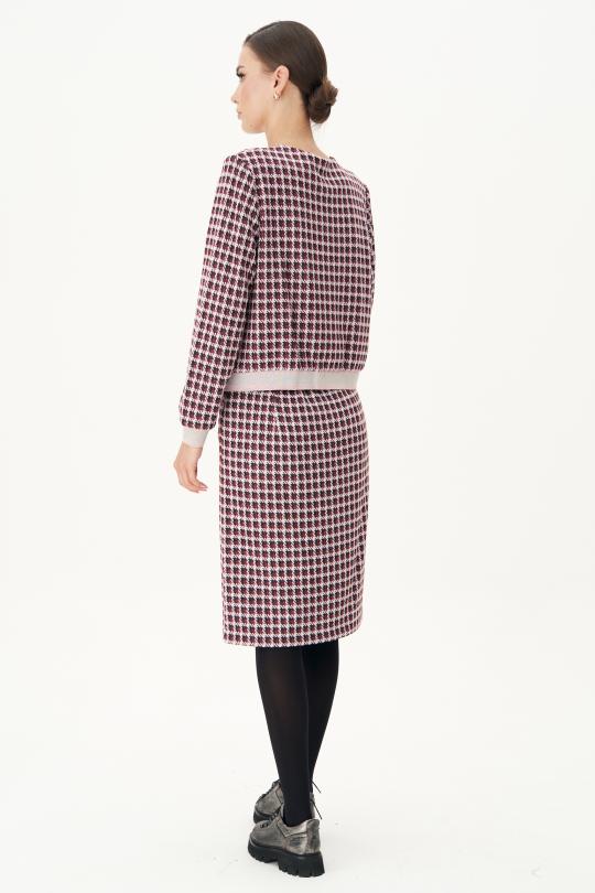Модный трикотаж стал бесспорным "must have" в этом осеннем сезоне. Носить любимые и практичные трикотажные вещи теперь можно смело, не беспокоясь о модных тенденциях, а только соответствуя им. Практичность такого гардероба сложно переоценить, вещи из одного лука можно смело сочетать с другими вещами и при этом выглядеть супер современно. Комплект состоит из джемпера и юбки. Джемпер свободного силуэта с втачным рукавом. Застежка центральная на петли и пуговицы. По линии борта, низу изделия, рукавам и горловине - отделочная эластичная тесьма "довяз" с легким блеском. Юбка зауженная к низу, на притачном поясе с частично эластичными вставками в области боковых швов.