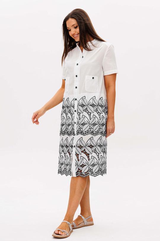 Платье из батиста, очень тонкое и практически не ощутимо ношении, в приоритете простота и удобство. Такой вариант всегда в моде. Белое платье с контрастной вышивкой и интересным