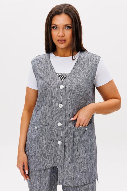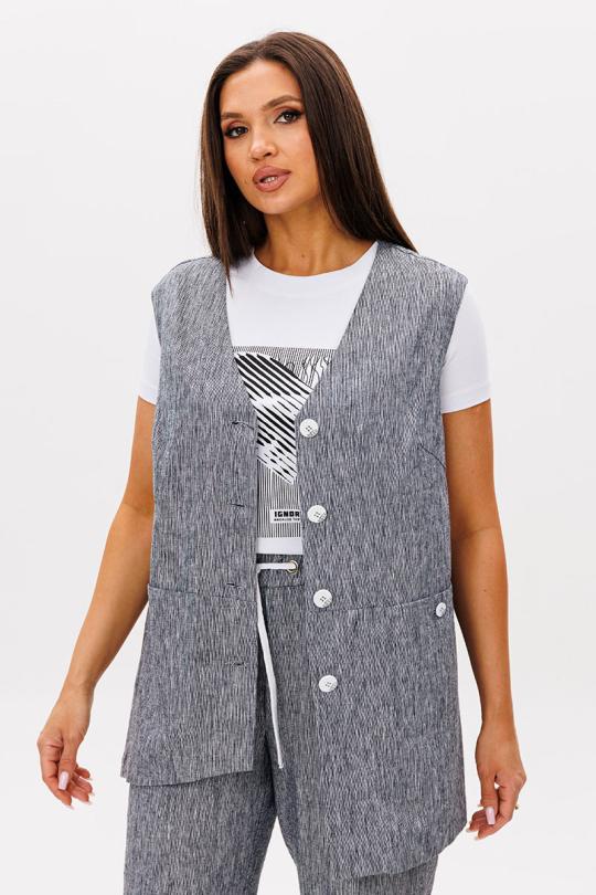 Стильный и актуальный образ - жилет на базовую футболку плюс брюки в расслабленном стиле. Практичный и удобный - это лучший вариант для летней жары. Свободный жилет, который можно