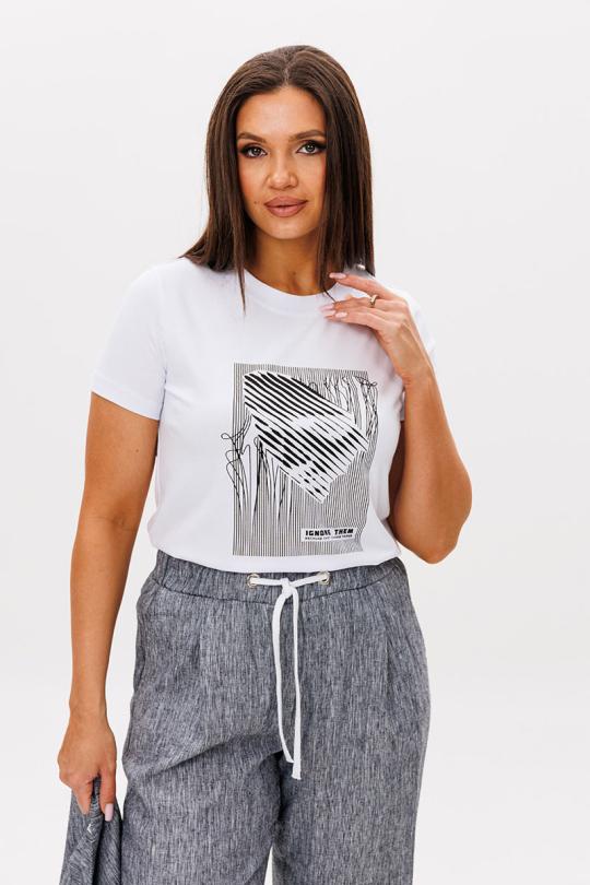 Футболка базовая, полуприлегающего силуэта с втачным коротким рукавом м авторским принтом.