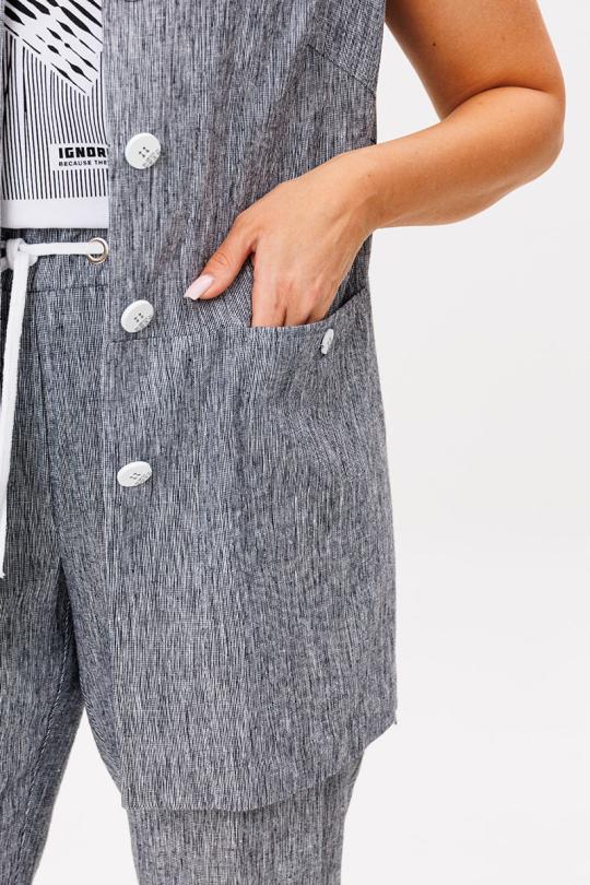 - Состав: лен 74%; вискоза 26%; футболка: хлопок 96%; спандекс 4%