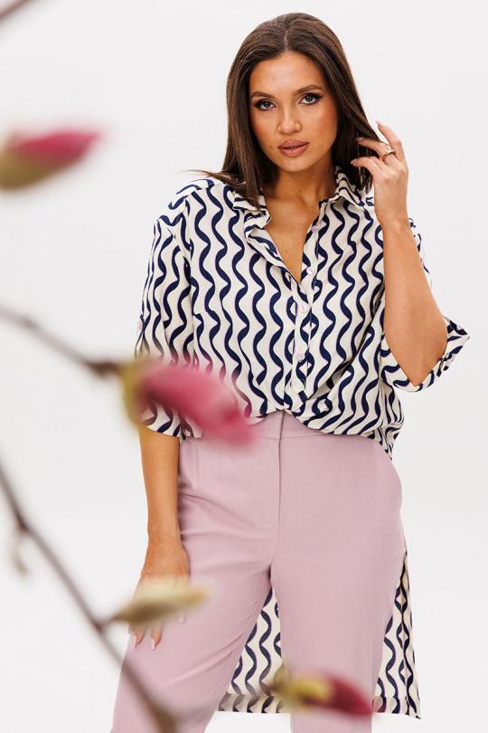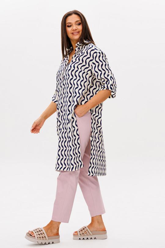 Комплект состоит из удлинённой рубашки-туники и брюк.