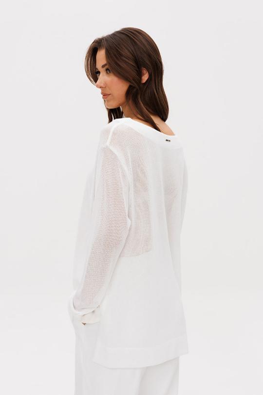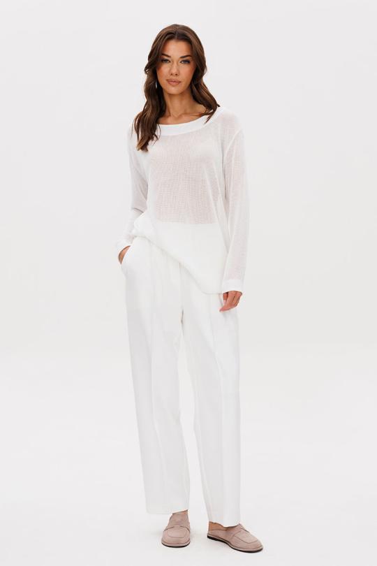 Свободный упрямленный джемпер из шелковой вискозы создает ощущение прохлады, даже в жаркий день. Комфортная заниженная линия плеча и рубашечный рукав дают неограниченные возможности и