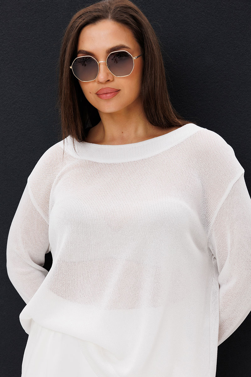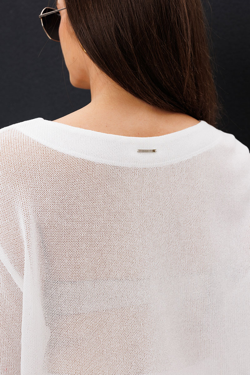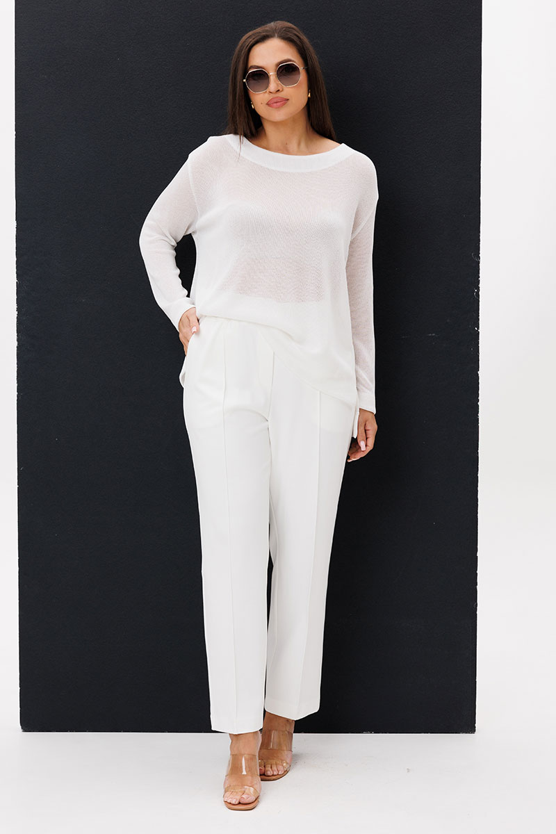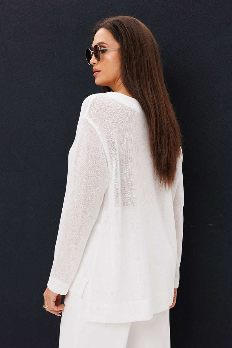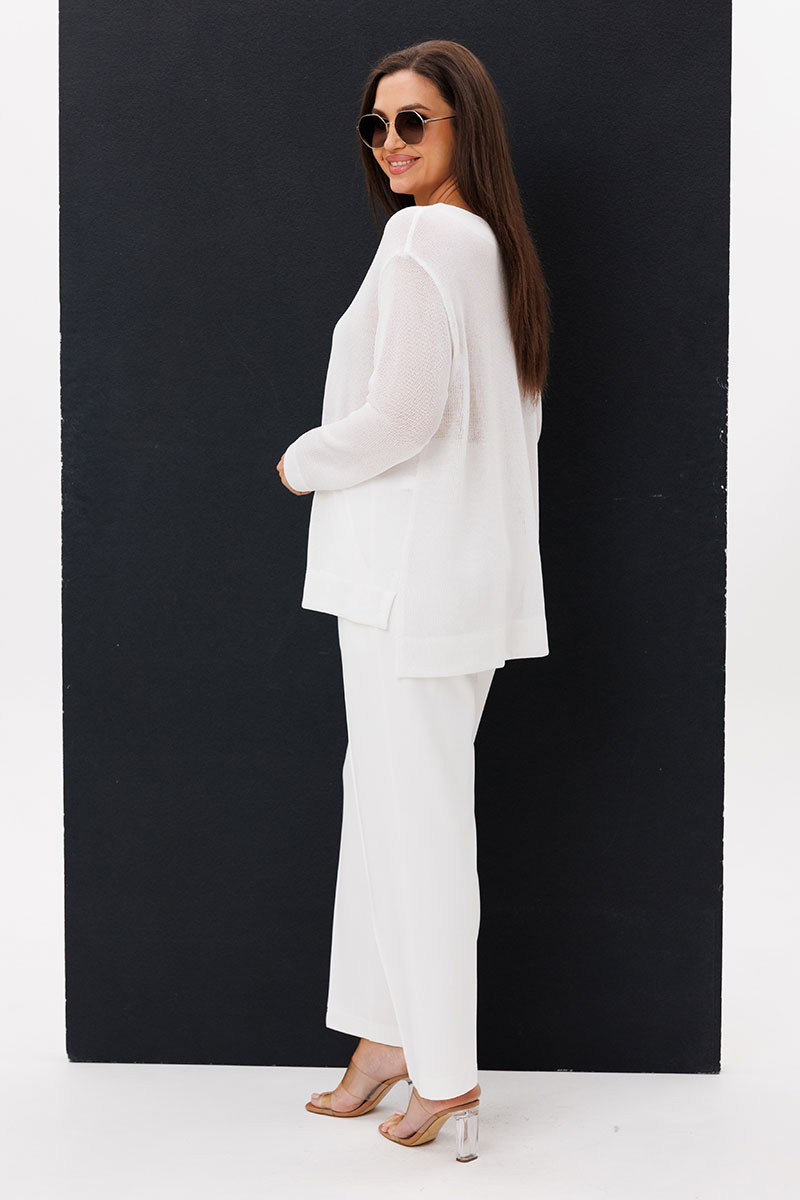 Свободный упрямленный джемпер из шелковой вискозы создает ощущение прохлады, даже в жаркий день. Комфортная заниженная линия плеча и рубашечный рукав дают неограниченные возможности и