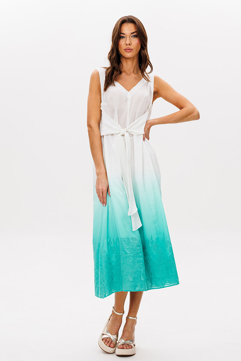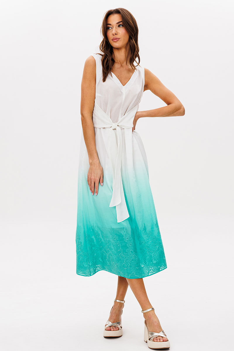 Главная составляющая лета, конечно же, платье, а главное полотно лета, конечно же, хлопок с шелком. Мы обожаем этот лёгкий и домашний материал, который всегда эффектен и выглядит дорого. Роскошное и лаконичное платье А-силуэт, свободного покроя с V-образным вырезом и поясом-бантом. Модель с прилегающим верхом и расширенным низом максимально выгодно подчёркивает талию и зрительно вытягивает силуэт.
