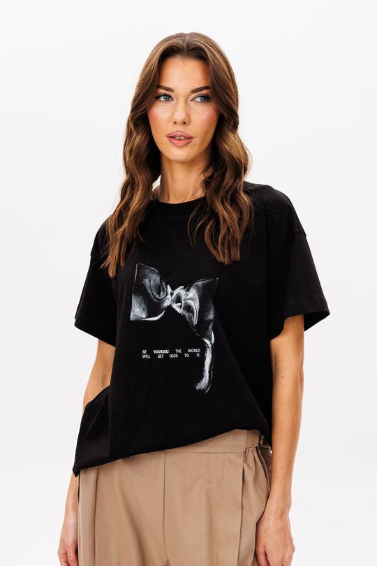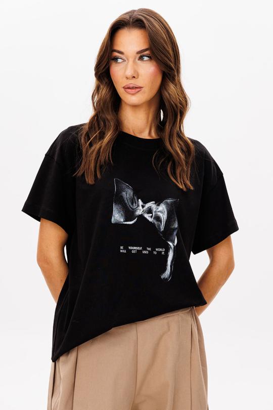 Базовые футболки - это, конечно, хорошо, но что делать, если хочется привнести в образ яркости, иронии и немного артистизма? Лучший способ выразить себя - выбрать вариант с классным говорящим принтом. Футболка классического кроя с втачным рукавом.