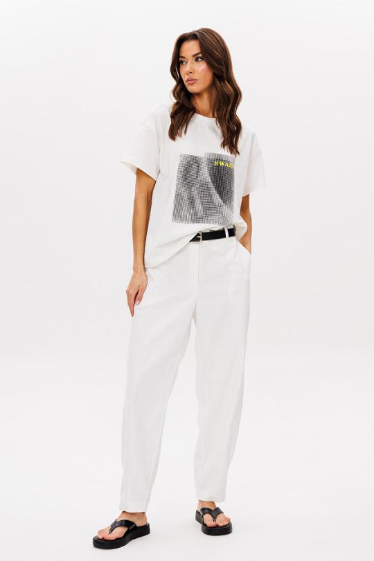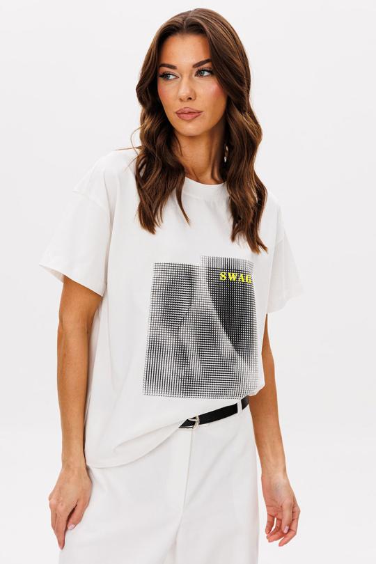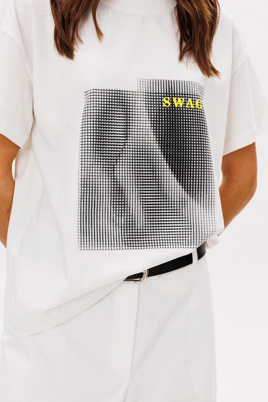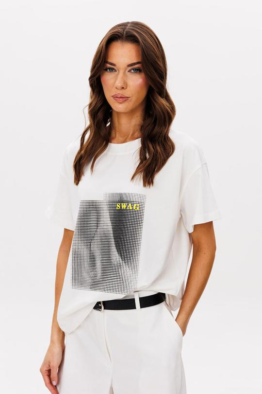 Базовые футболки - это, конечно, хорошо, но что делать, если хочется привнести в образ яркости, иронии и немного артистизма? Лучший способ выразить себя - выбрать вариант с классным говорящим принтом. Футболка классического кроя с втачным рукавом.