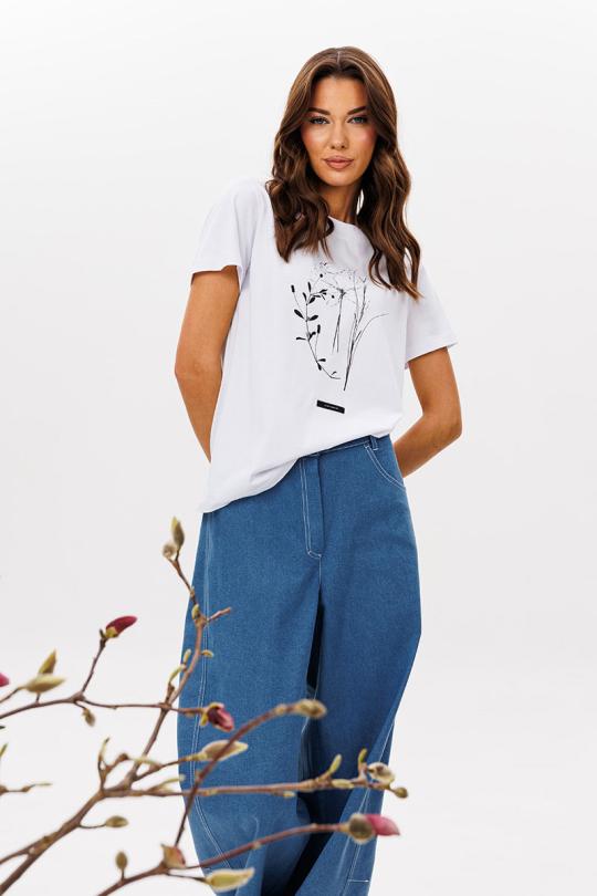 Базовые футболки - это, конечно, хорошо, но что делать, если хочется привнести в образ яркости, иронии и немного артистизма? Лучший способ выразить себя - выбрать вариант с классным говорящим принтом. Футболка классического кроя с втачным рукавом.