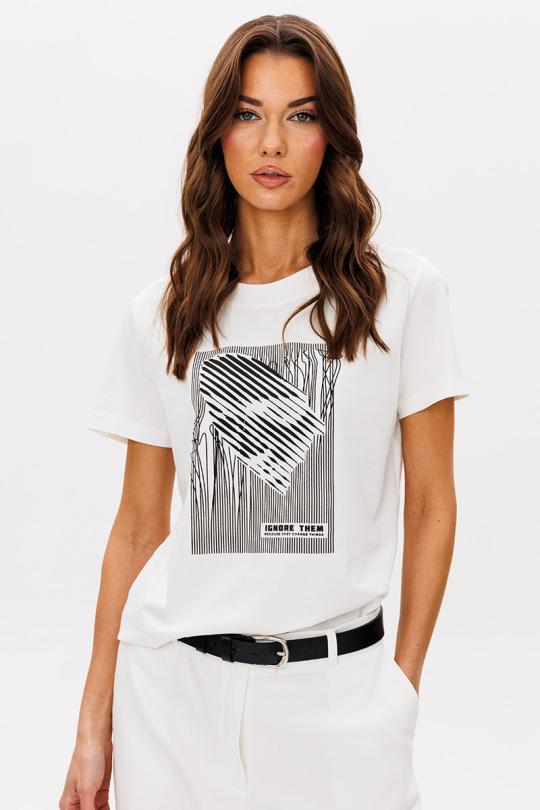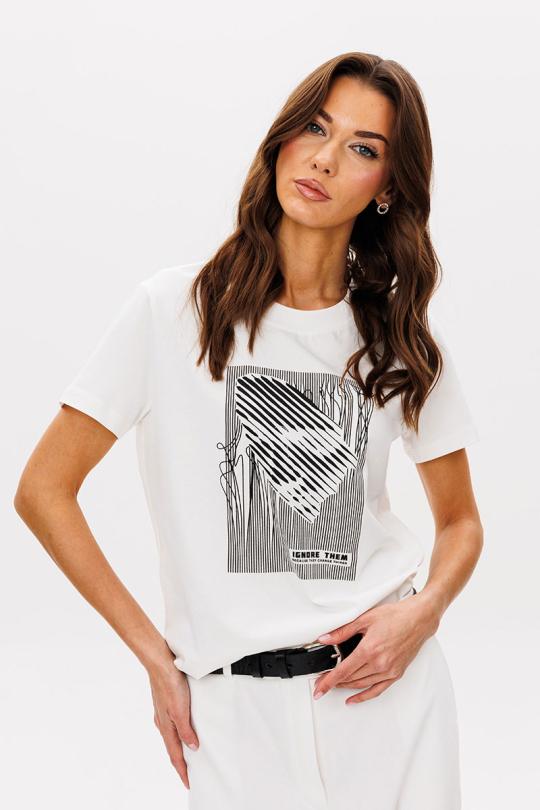 Базовые футболки - это, конечно, хорошо, но что делать, если хочется привнести в образ яркости, иронии и немного артистизма? Лучший способ выразить себя - выбрать вариант с классным говорящим принтом. Футболка классического кроя с втачным рукавом.