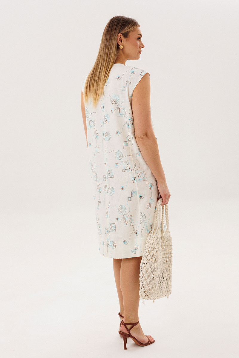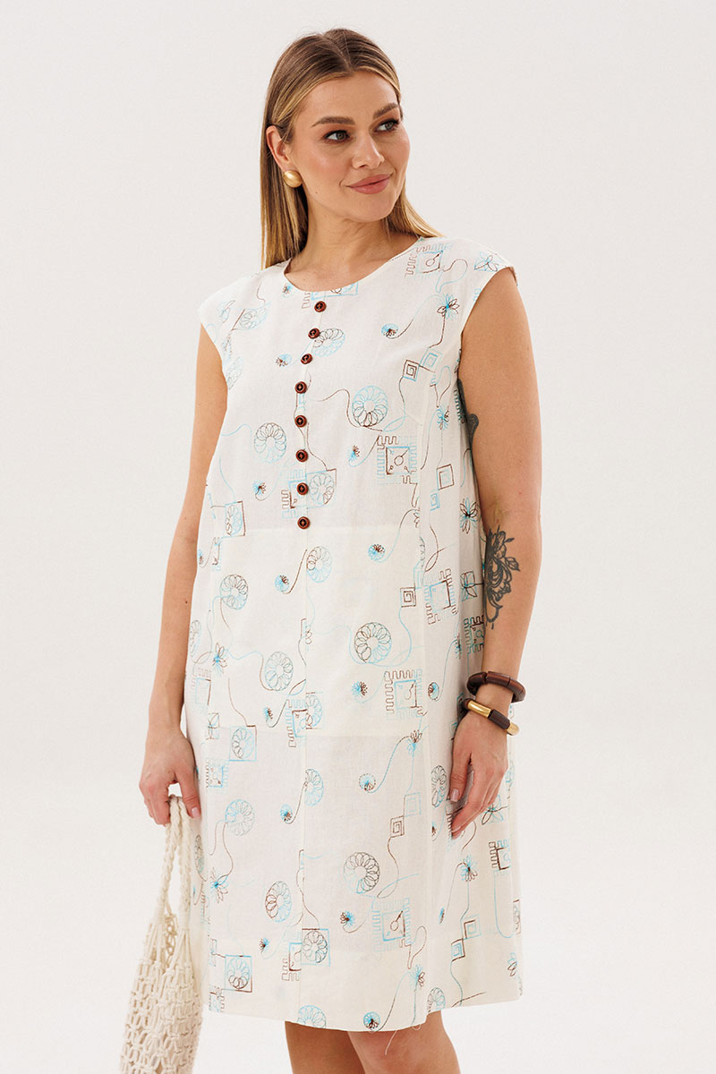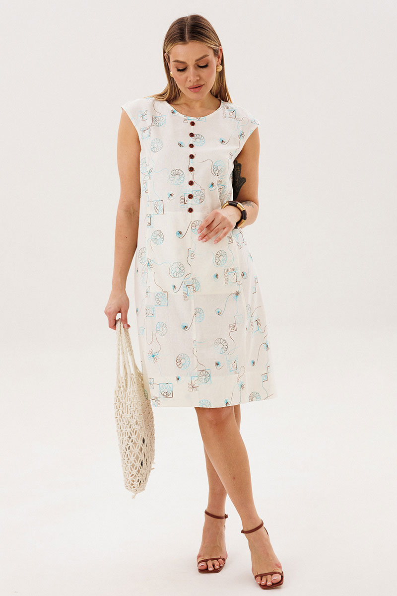 Простой А-образный крой, который подходит практически всем, слегка заниженная линия плеча и эффектный авторский принт, придающий особый шарм платью. Минимализм и роскошь - все в одном