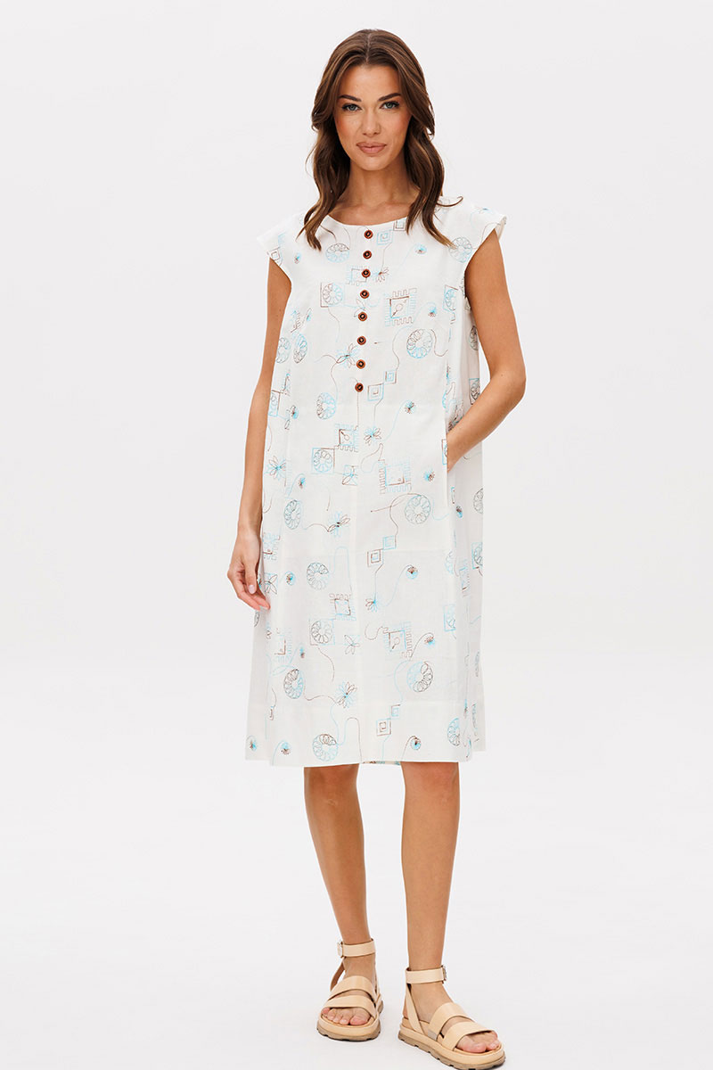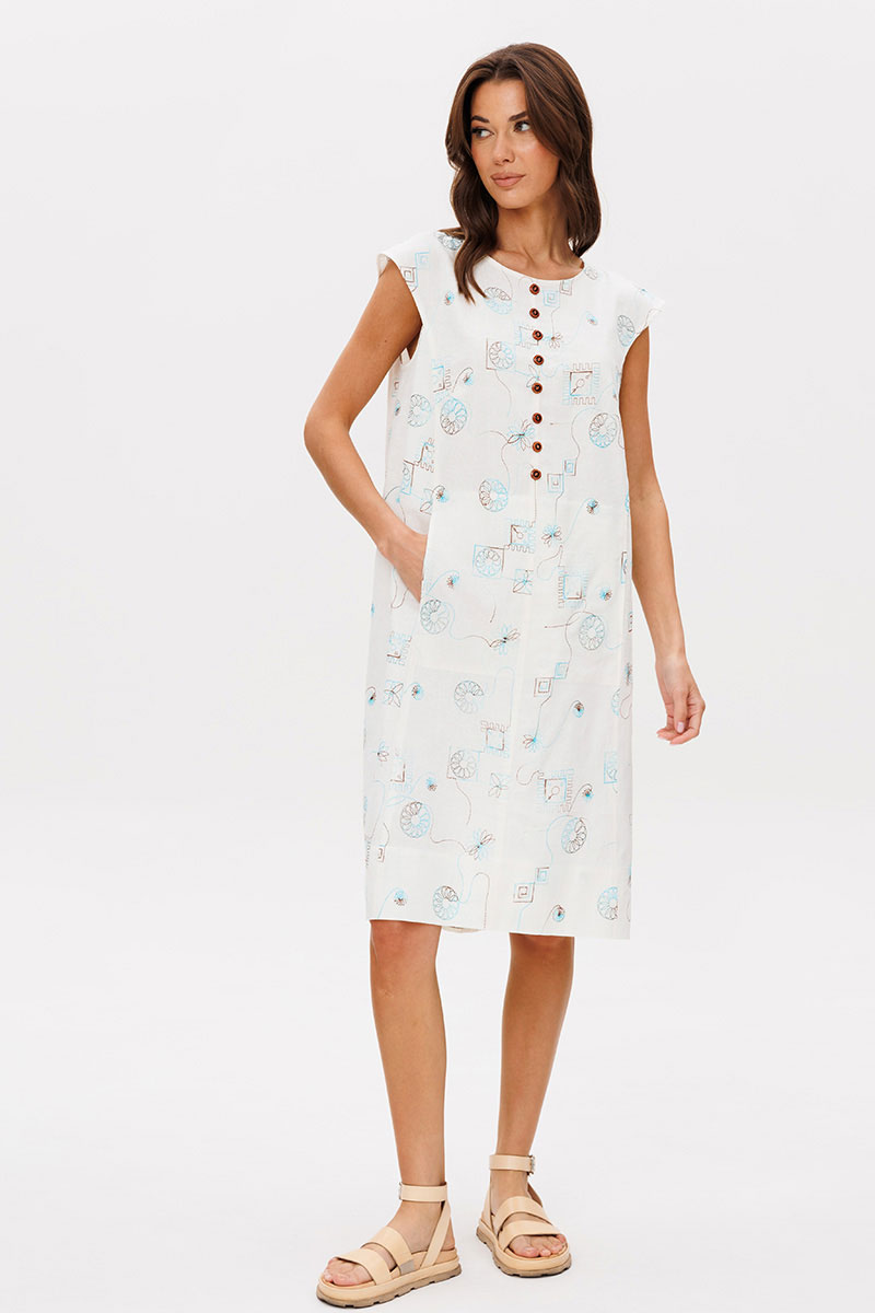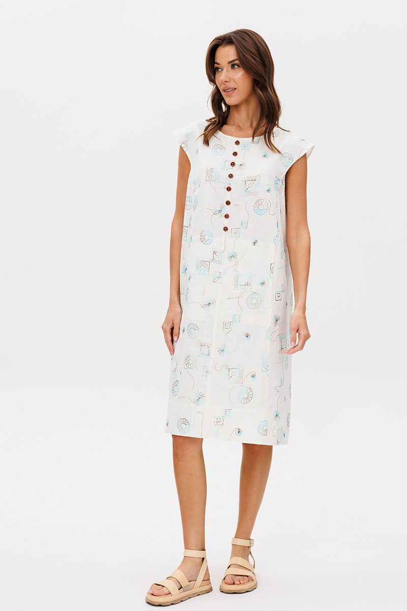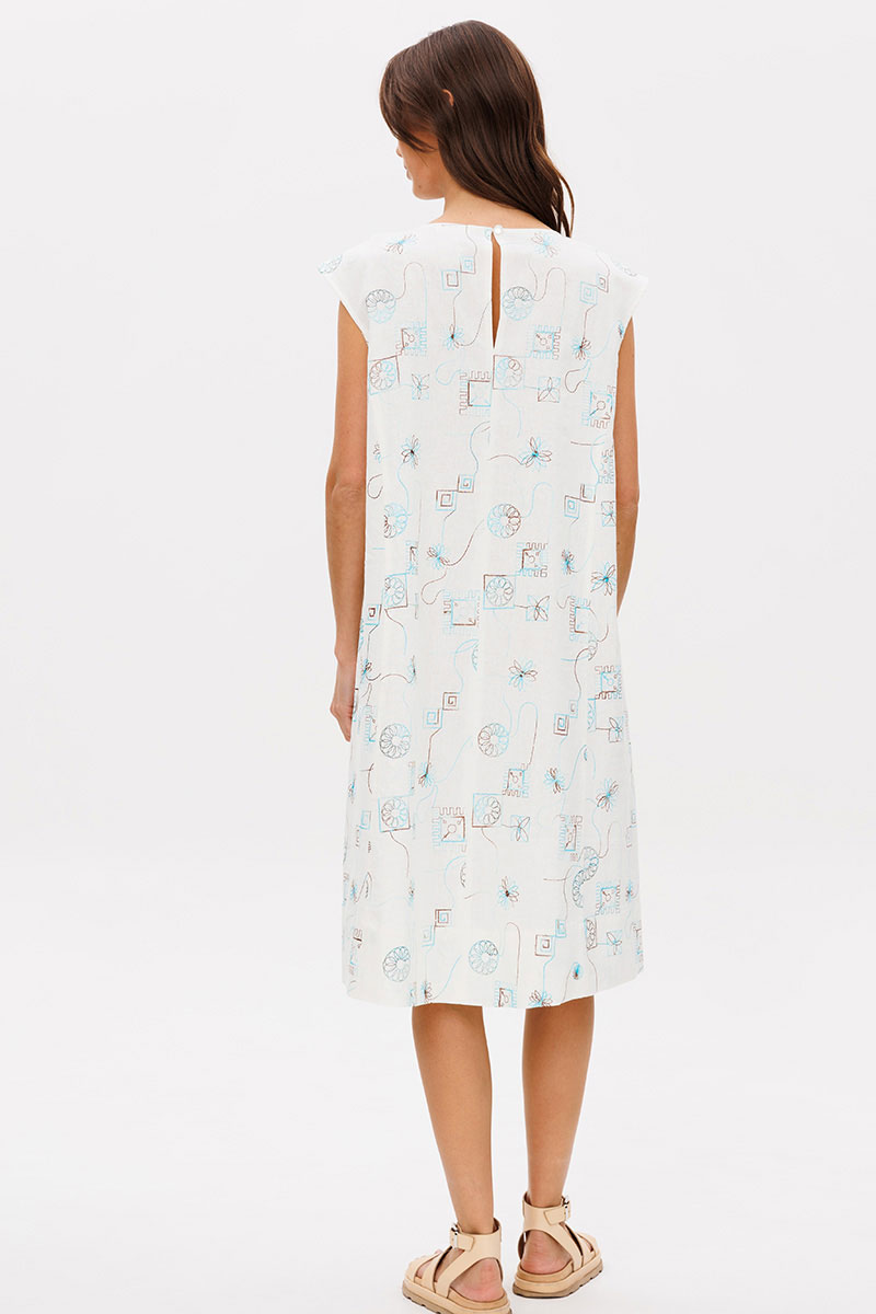 Простой А-образный крой, который подходит практически всем, слегка заниженная линия плеча и эффектный авторский принт, придающий особый шарм платью. Минимализм и роскошь,-все в одном
