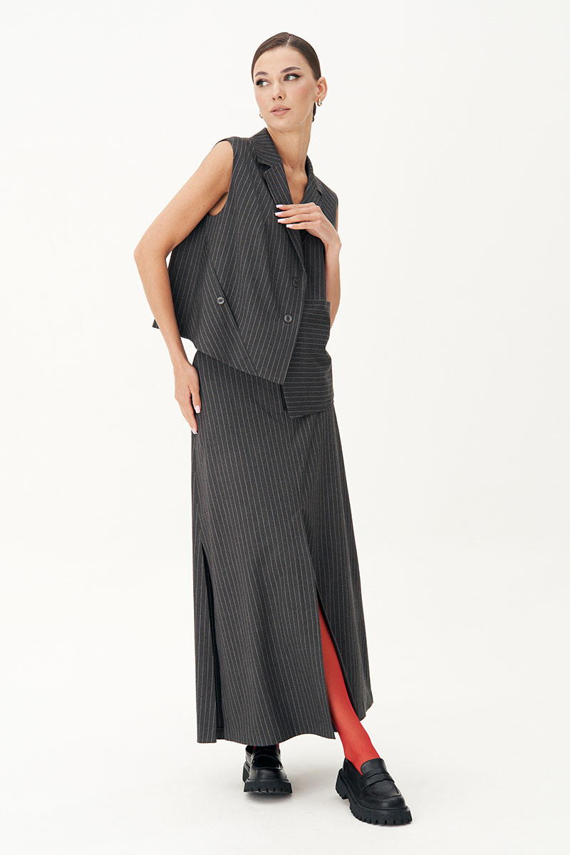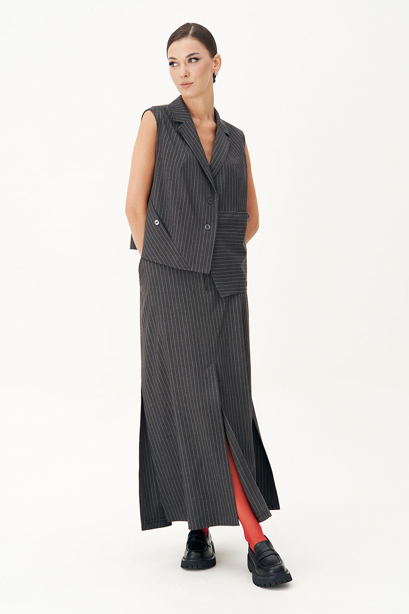 Костюм с жилетом - прекрасное решение для смелых экспериментов. Выполненный в ахроматической цветовой гамме, он позволяет дополнять себя различными аксессуарами и создавать каждый раз новые актуальные образы.