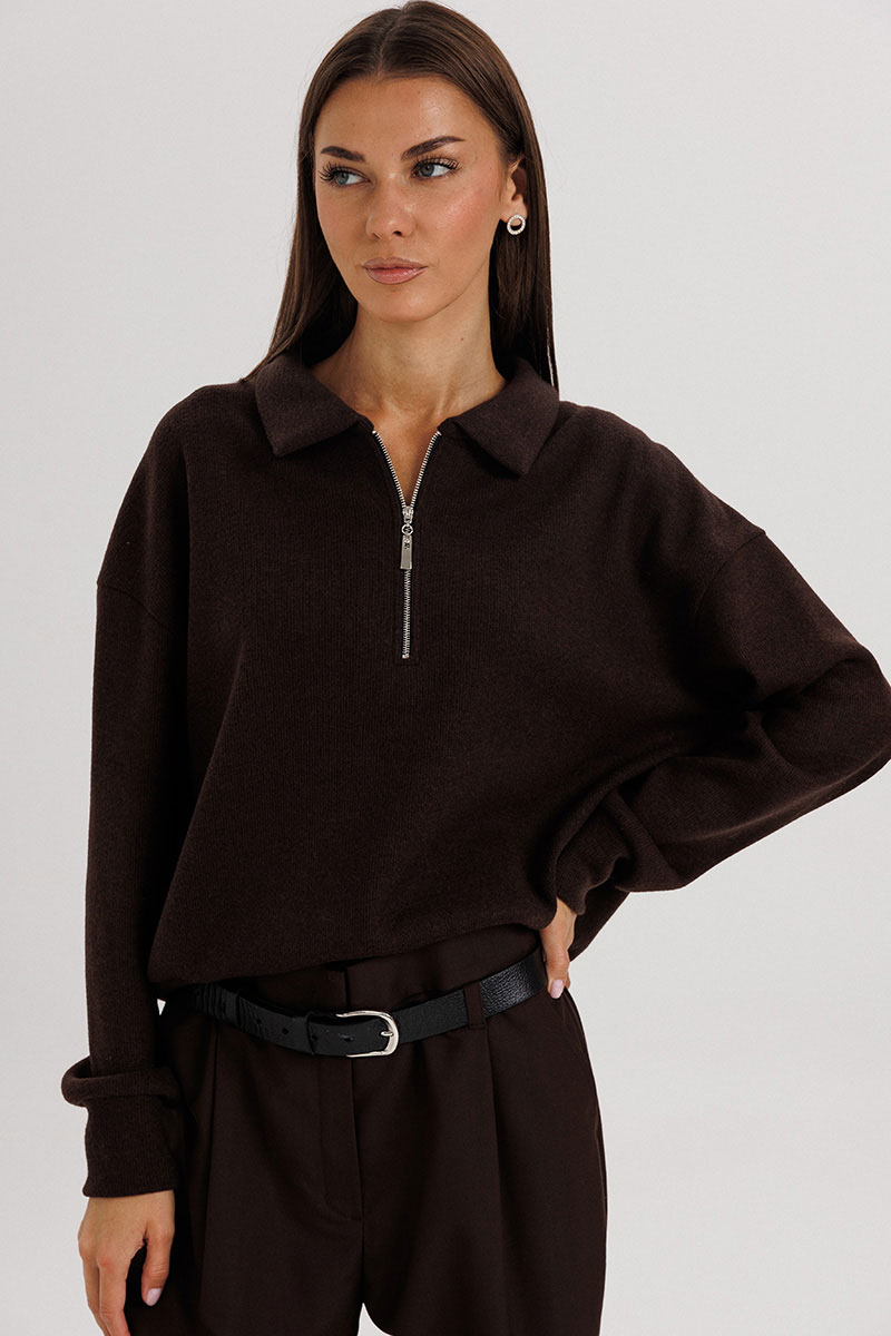 застёжка-молния. По низу джемпера - отрезной пояс.