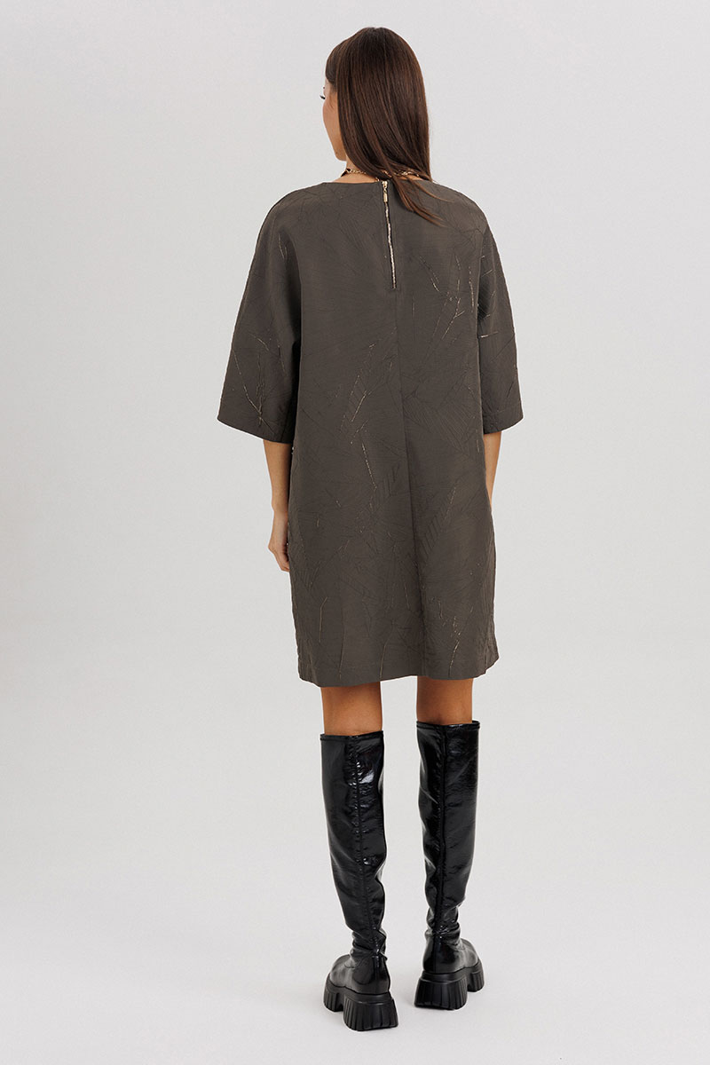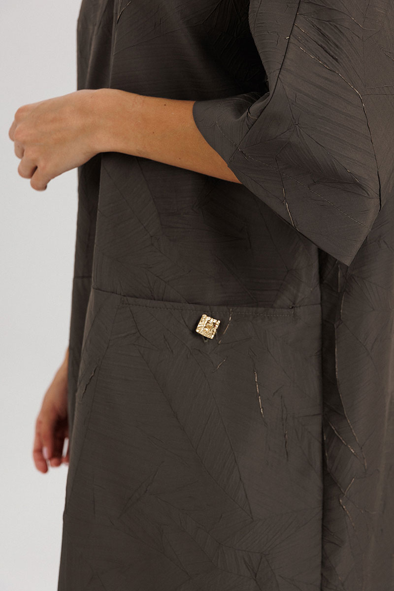 Цельнокроенный покрой и свободная посадка создают лаконичный и элегантный образ, подходящий для любого типа фигуры. Рукава длиной до локтя добавляют лёгкости и делают силуэт визуально