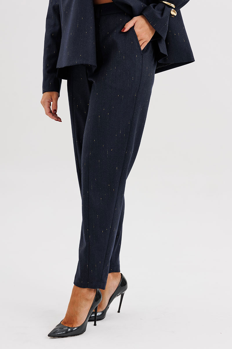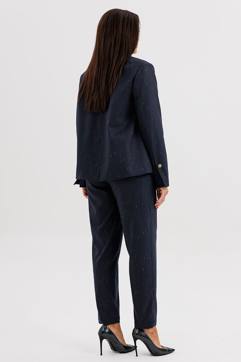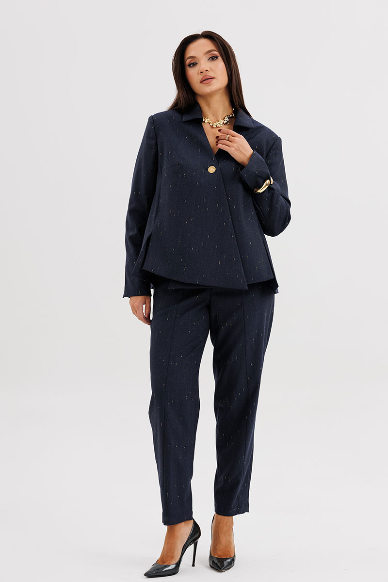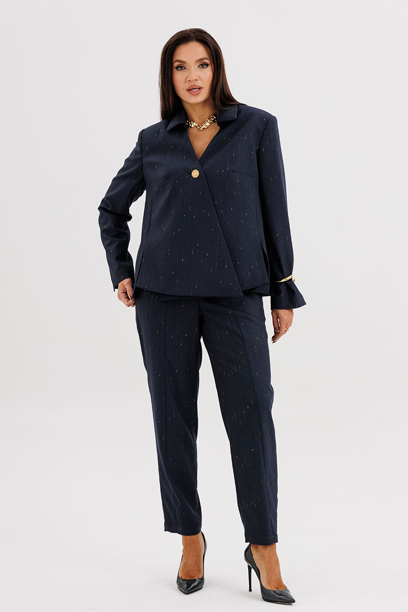 Элегантный брючный костюм из поливискозной ткани с лёгким вкраплением люрекса — выбор современных женщин, ценящих утончённый стиль и комфорт.