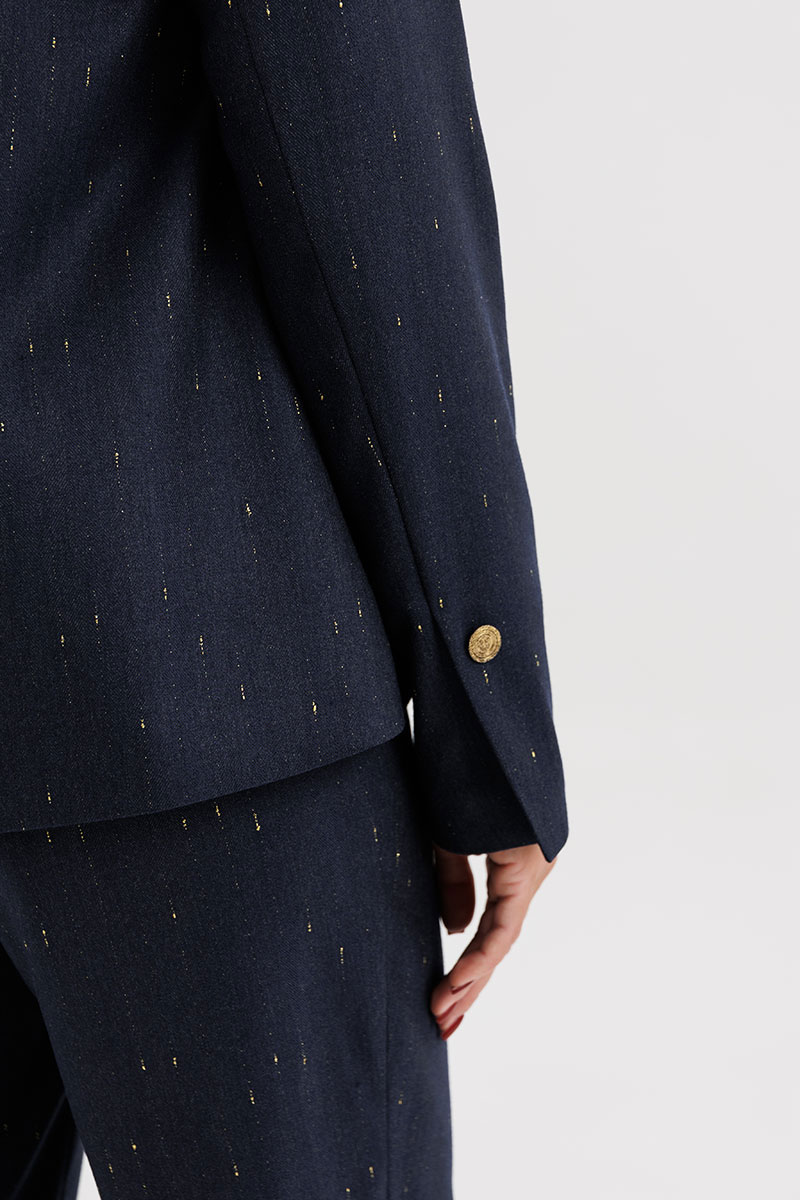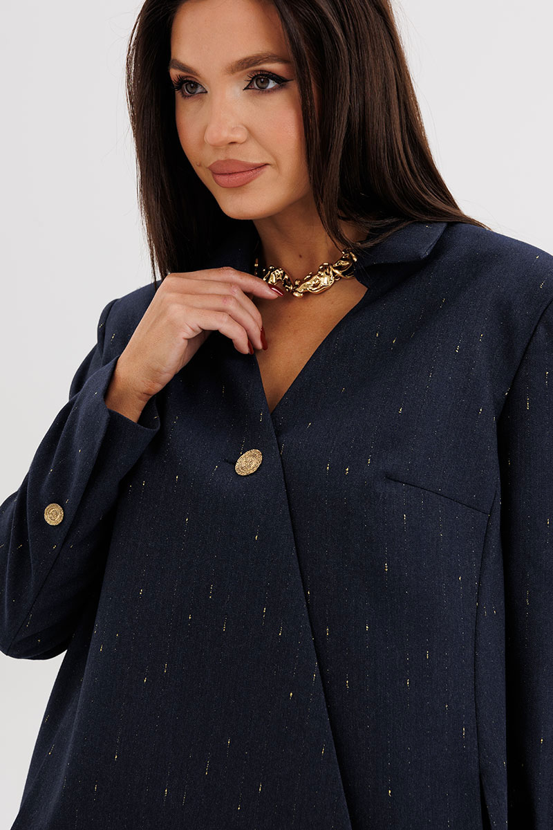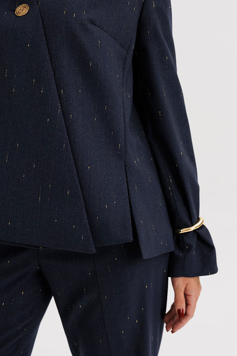 Костюм идеально подойдёт для офисных будней, деловых встреч и стильных повседневных выходов. В нём каждая деталь работает на образ — от благородного оттенка ткани до мягкого блеска люрекса.