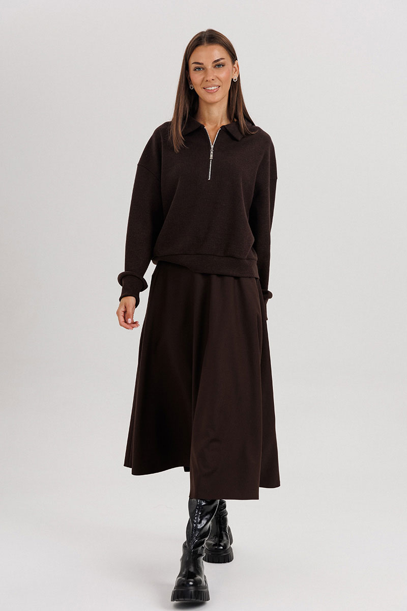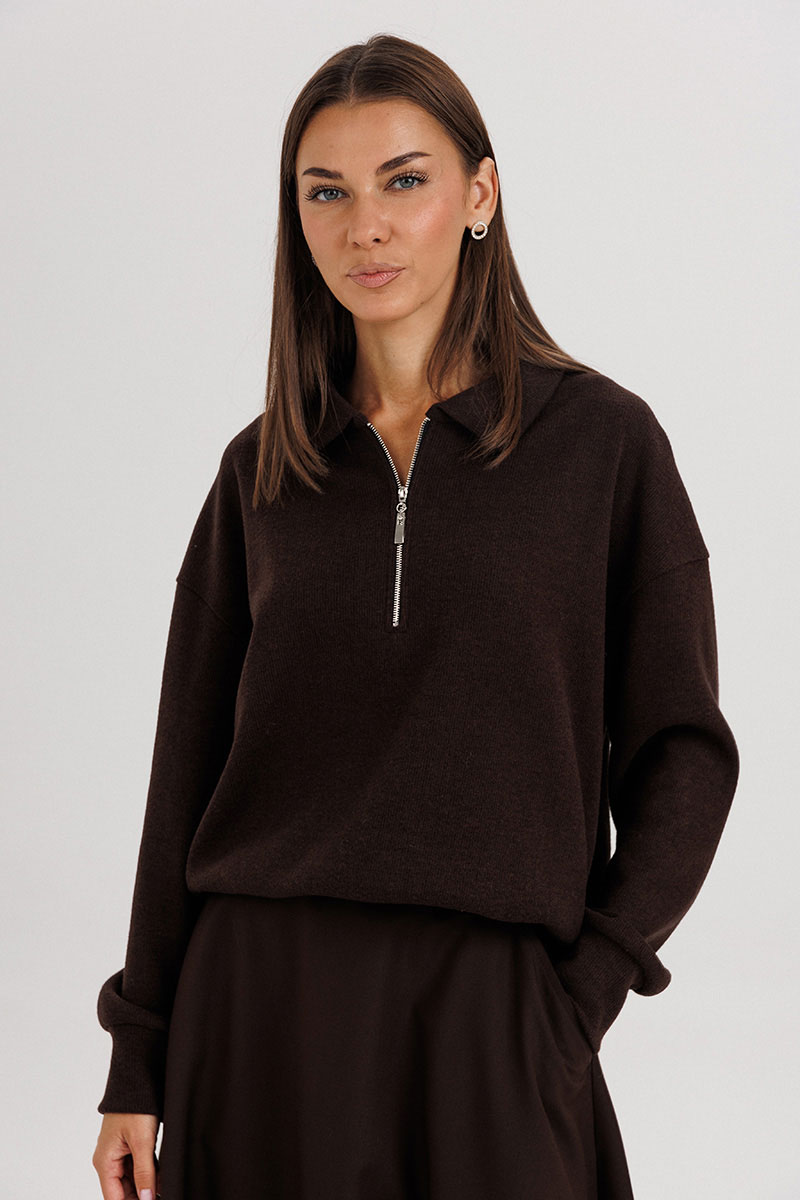 застёжка-молния. По низу джемпера - отрезной пояс.