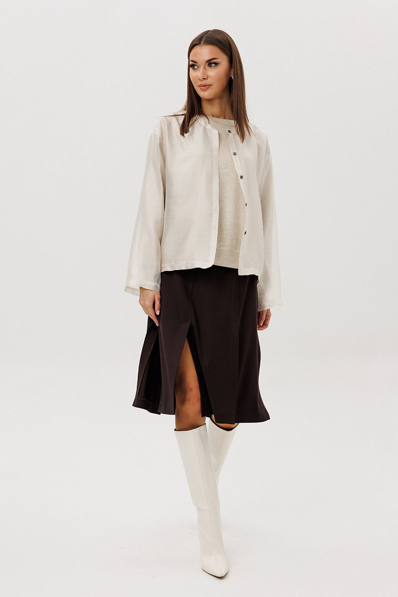 В центре — эффектная юбка-шестиклинка. Благодаря шести выразительным шлицам она красиво раскрывается при движении, подчёркивая плавность шага и создавая изящную женственную линию силуэта. Это та самая юбка, в которой вы выглядите элегантно при любой активности.