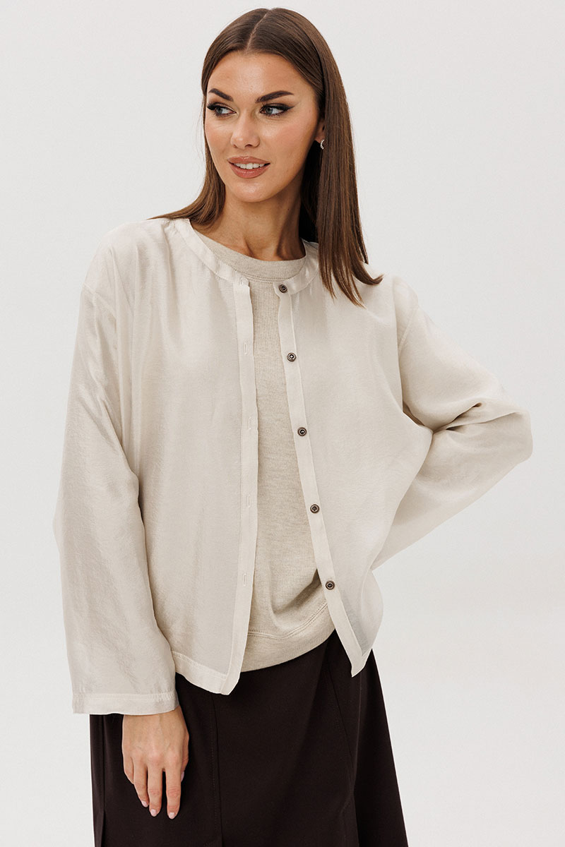 Финальный штрих — невероятно нежная блуза из тонкой вискозной органзы. Полупрозрачная, воздушная, она добавляет образу утончённый шарм и лёгкий эффект многослойности, который выглядит по-настоящему современно и статусно.