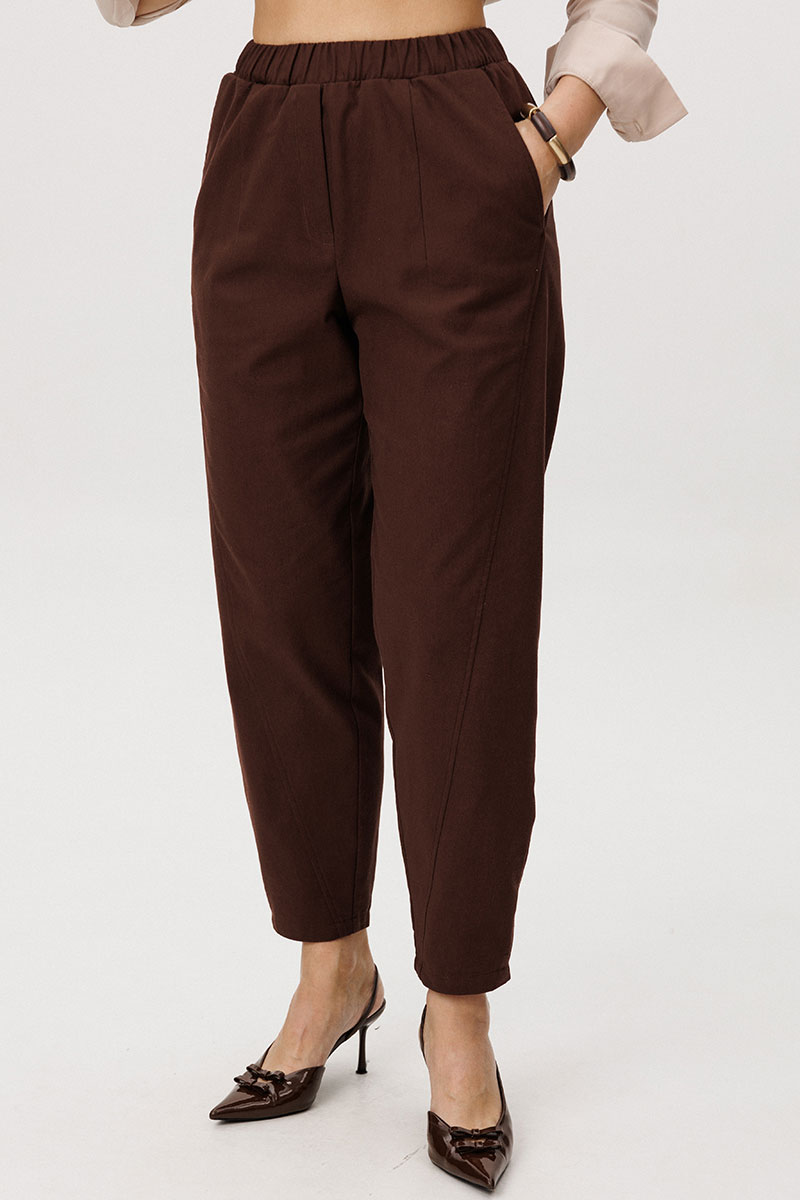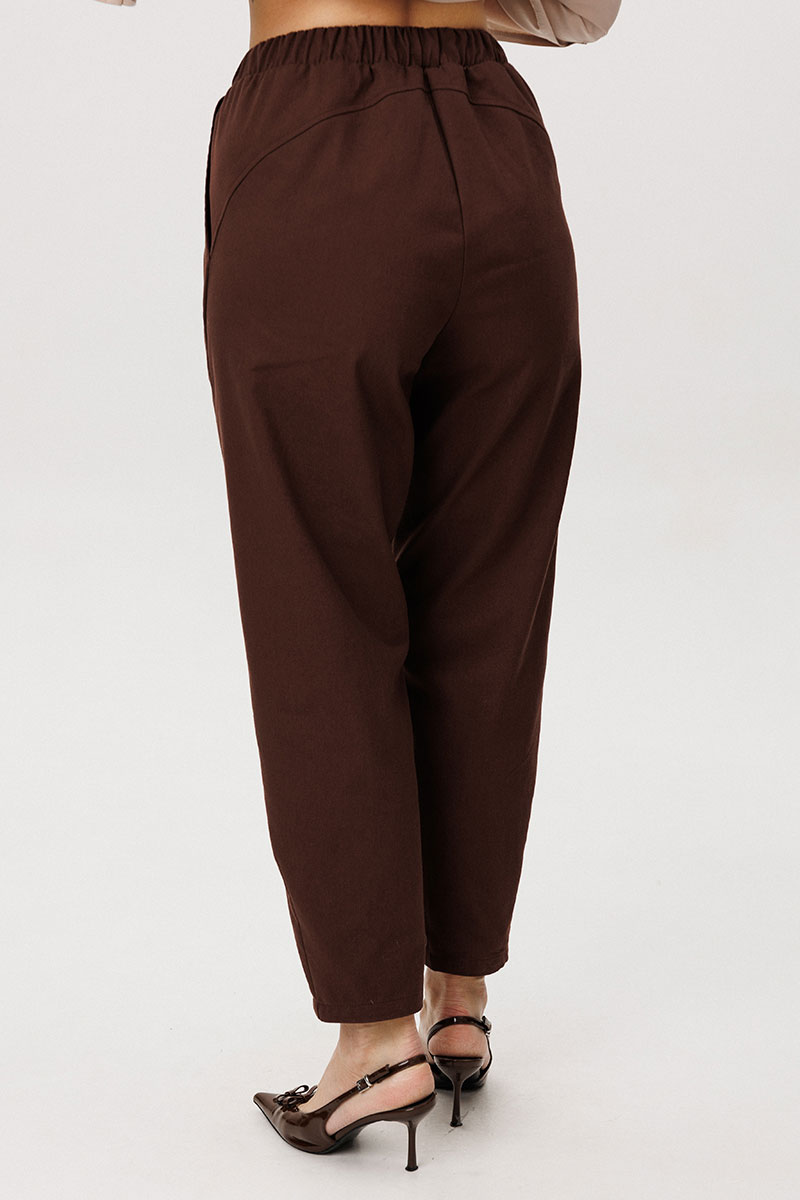 Брюки лаконичного дизайна уравновешивают верх и делают комплект универсальным. Свободный крой и мягкая посадка обеспечивают комфорт и свободу движений в течение всего дня.
