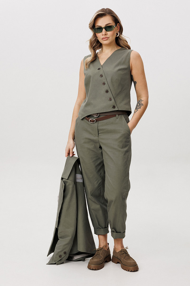 Современная брючная тройка, сочетающая продуманный крой и комфорт повседневного гардероба. Модель выполнена в стиле casual и подходит для динамичного городского ритма, сохраняя аккуратный и собранный внешний вид.