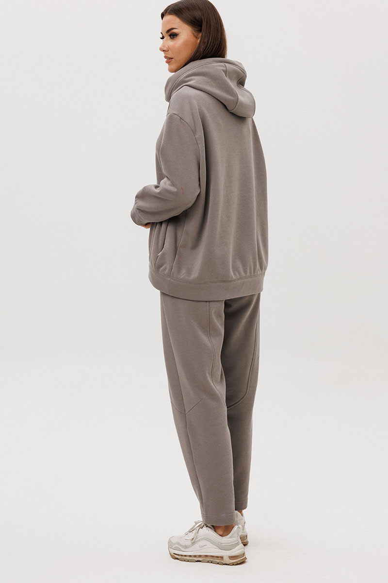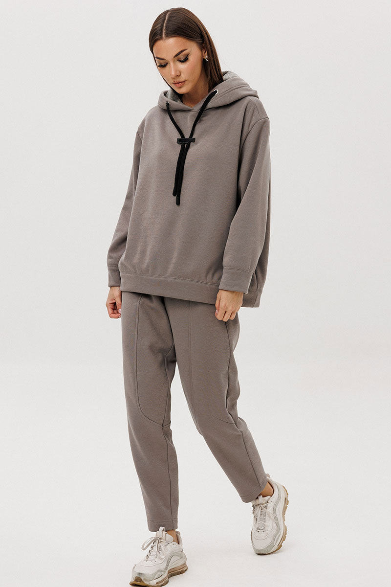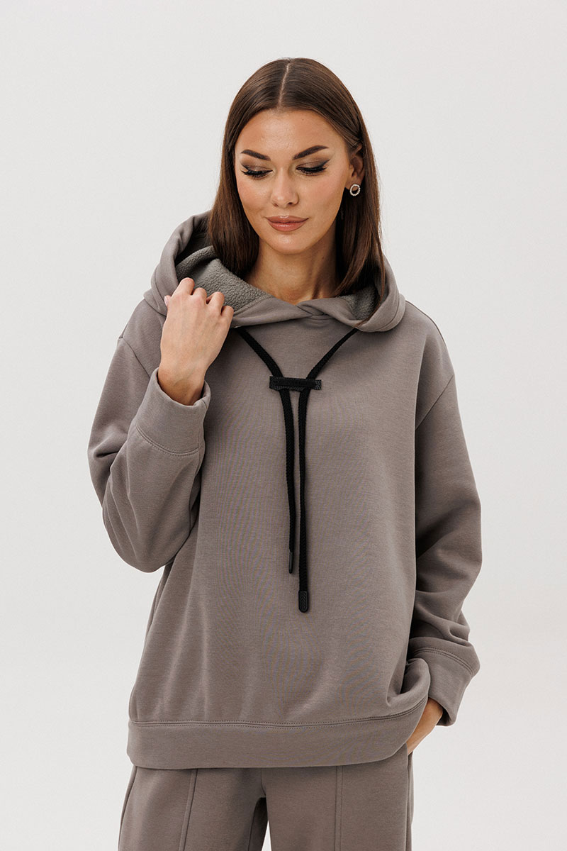 Уютный костюм из тёплого хлопчатобумажного футера с мягким начёсом «барашек» — идеальное сочетание комфорта и современного стиля. Объёмный худи с капюшоном и контрастным шнуром