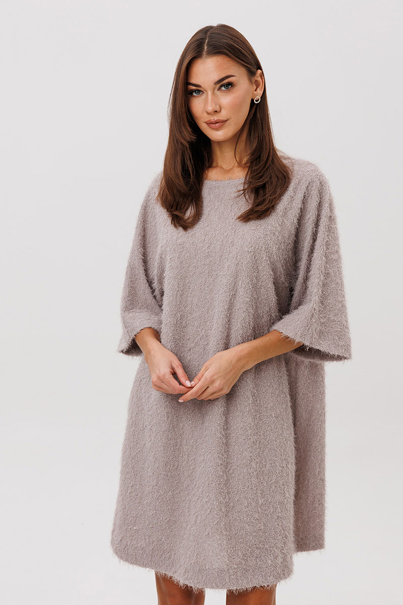Лёгкое сияние волокон делает платье по-настоящему нарядным, но при этом универсальным: в нём одинаково эффектно выглядят и в повседневной обстановке, и на вечерних встречах. Удобная застёжка-молния на спинке завершает образ продуманной функциональностью.