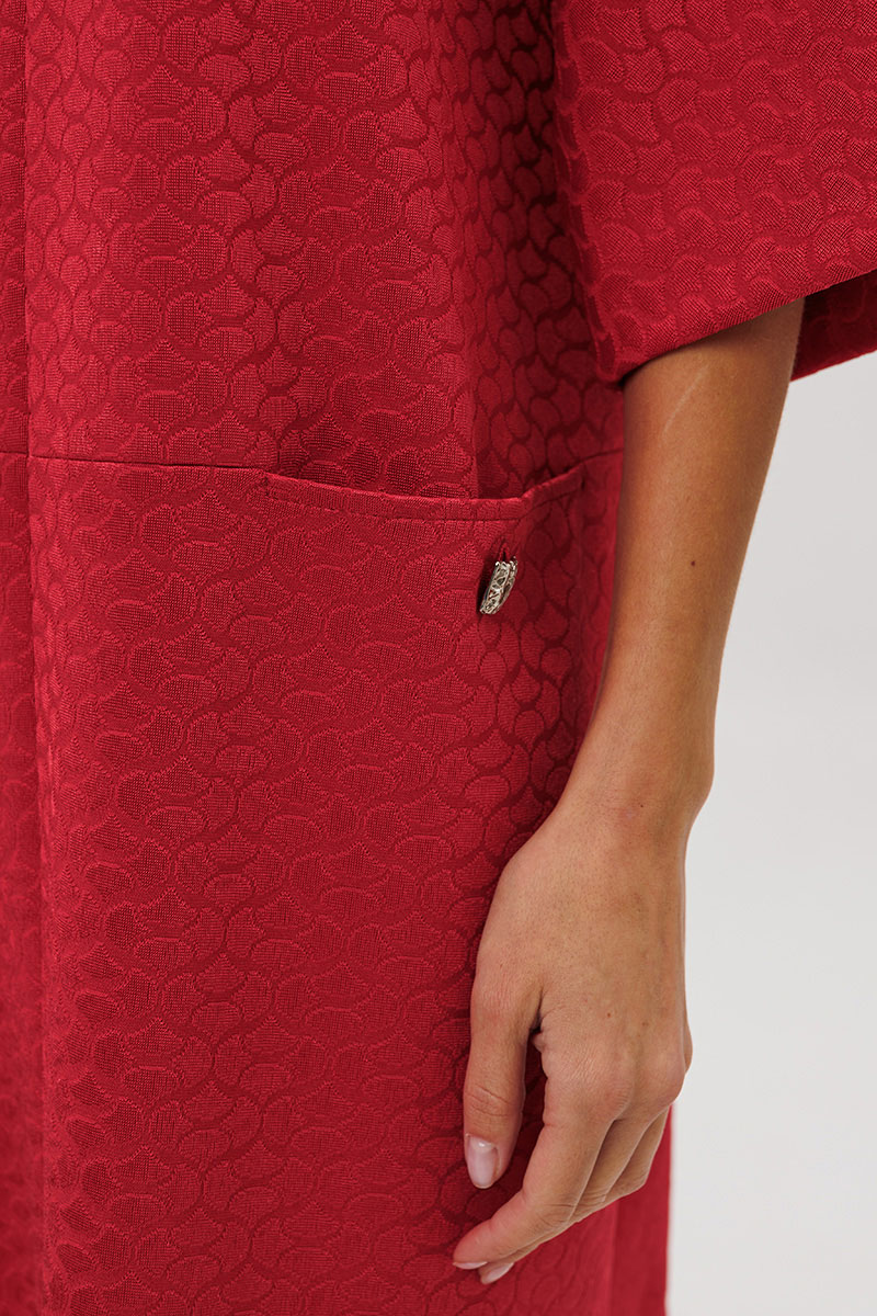 Стильное платье из жаккардового трикотажа — идеальный баланс комфорта и структуры. Фактурное полотно держит форму, создавая чистый силуэт, а свободный крой и функциональные карманы добавляют расслабленную лёгкость. Модель, которая моментально делает образ современным и уверенным.