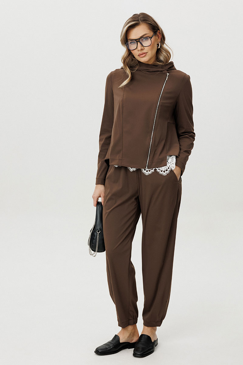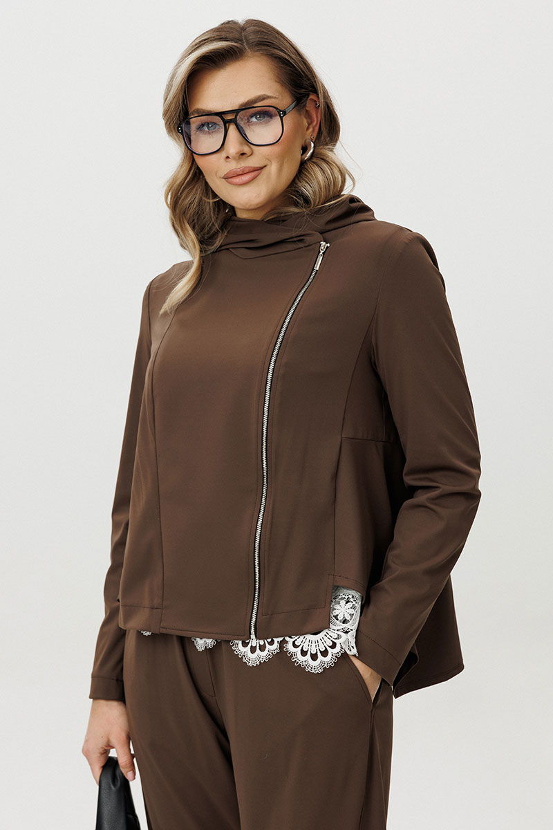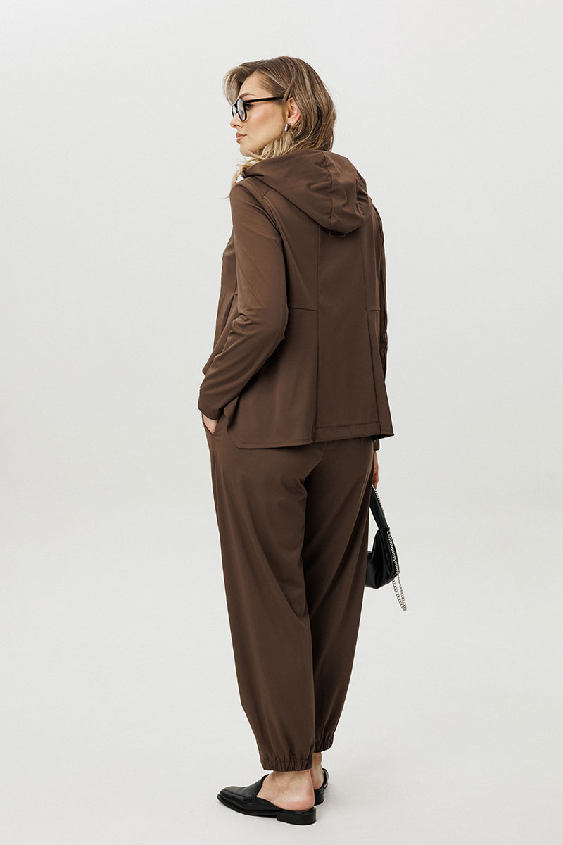 Куртка с капюшоном выполнена в минималистичной эстетике и дополнена асимметричной застёжкой на тесьму-молнию, которая создаёт динамику и подчёркивает дизайнерский характер модели.