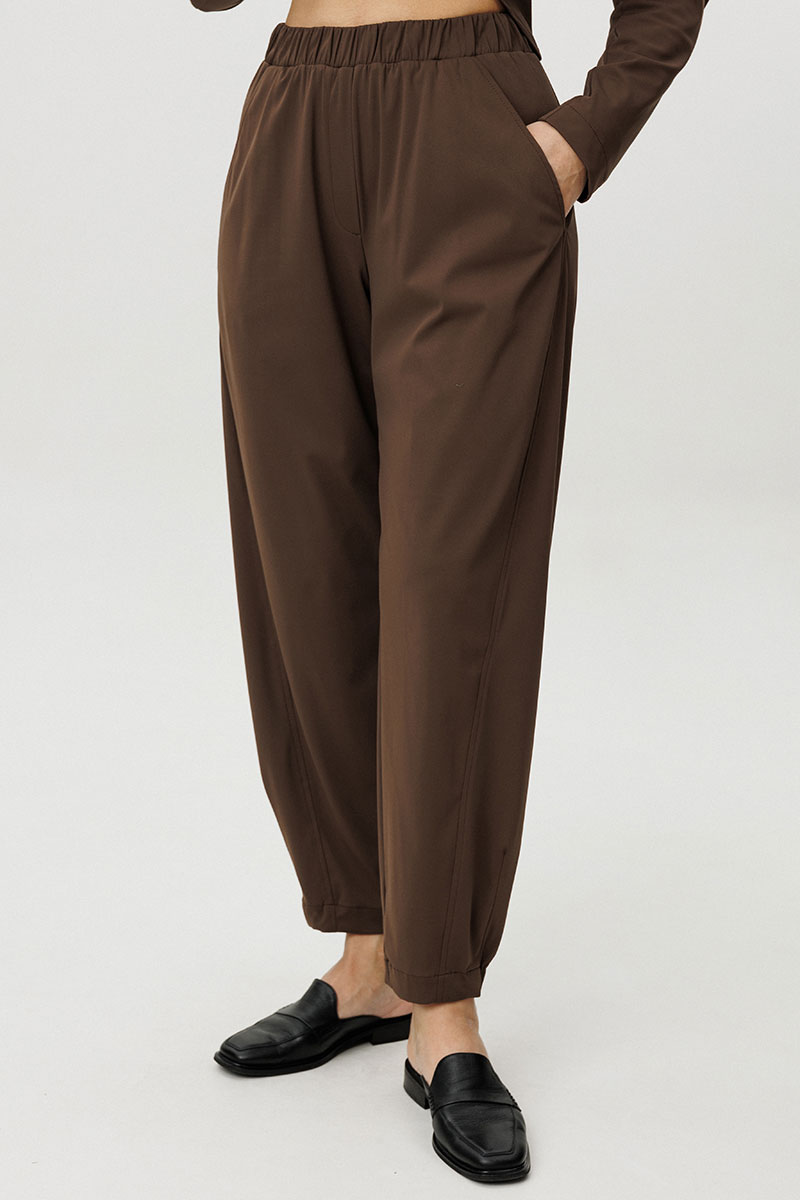 Брюки в расслабленном стиле с эластичным поясом обеспечивают комфортную посадку и свободу движений. Эффектные подрезы добавляют объём и архитектурность, делая модель визуально