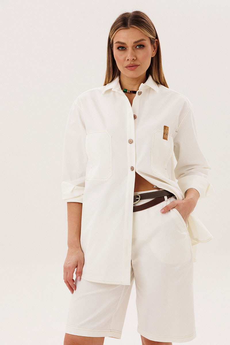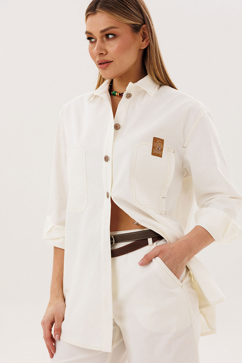 - Рубашка выполнена из лёгкого денима, который отлично пропускает воздух и обеспечивает комфорт даже в жаркую погоду. Свободный силуэт и минималистичные детали делают модель