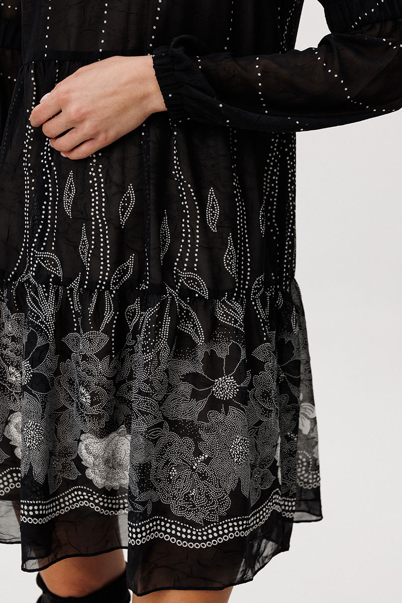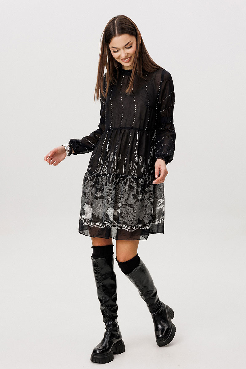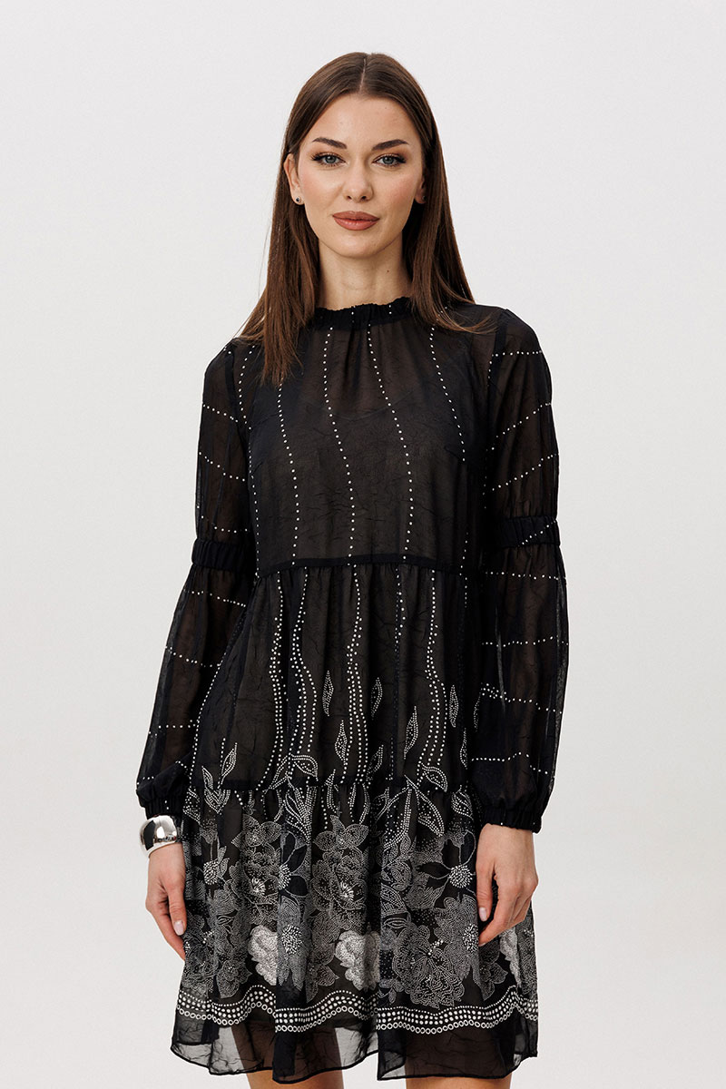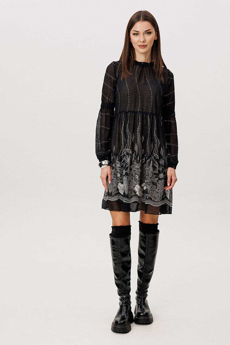 Шифон - это идеальная ткань для пошива весенних платьев. Платья, выполненные из этого материала, выглядят элегантно и игриво, особенно если это платье в романтическом стиле. Нежное и воздушное, с каскадом расширяющихся воланов с легкой сборкой, свободного силуэта. Рукав втачной из двух частей с эластичной тесьмой в верхней части и по низу. Горловина изделия с декоративной отделкой со сборкой.