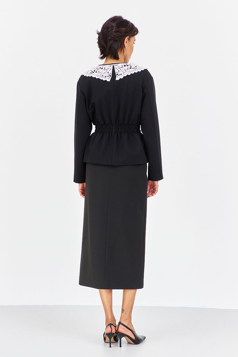 Комплект жакет с декоративным хлопковым воротнииком с юбкой.