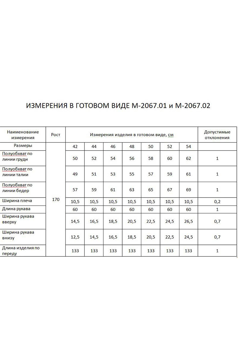 Таблица размеров