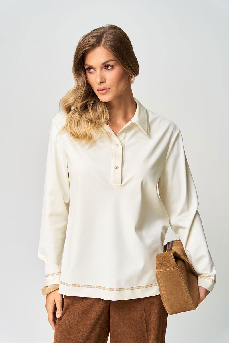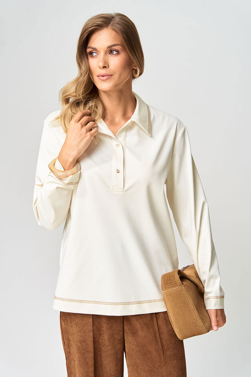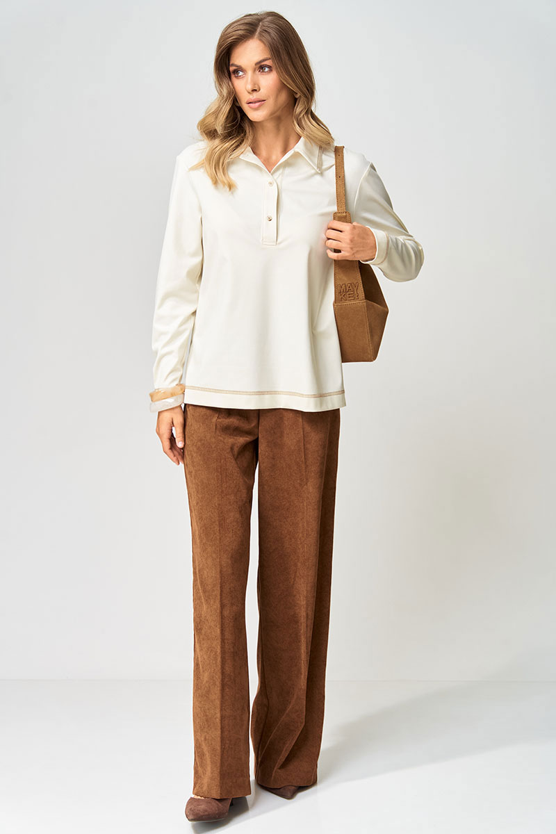 Джемпер прямого силуэта с воротником поло из плотной хлопковой ткани "двухнитка". Рукав втачной одношовный. По низу изделия, по низу рукава и по воротнику проложена отделочная строчка. Данная модель прекрасно сочетается с другими моделями из нашей коллекции 35204, 15408/1, 15408, 35377. Создайте гармоничный образ, комбинируя эти изделия!