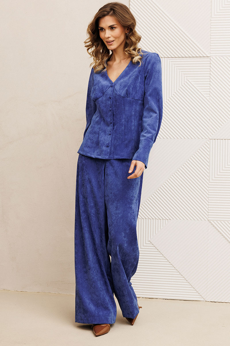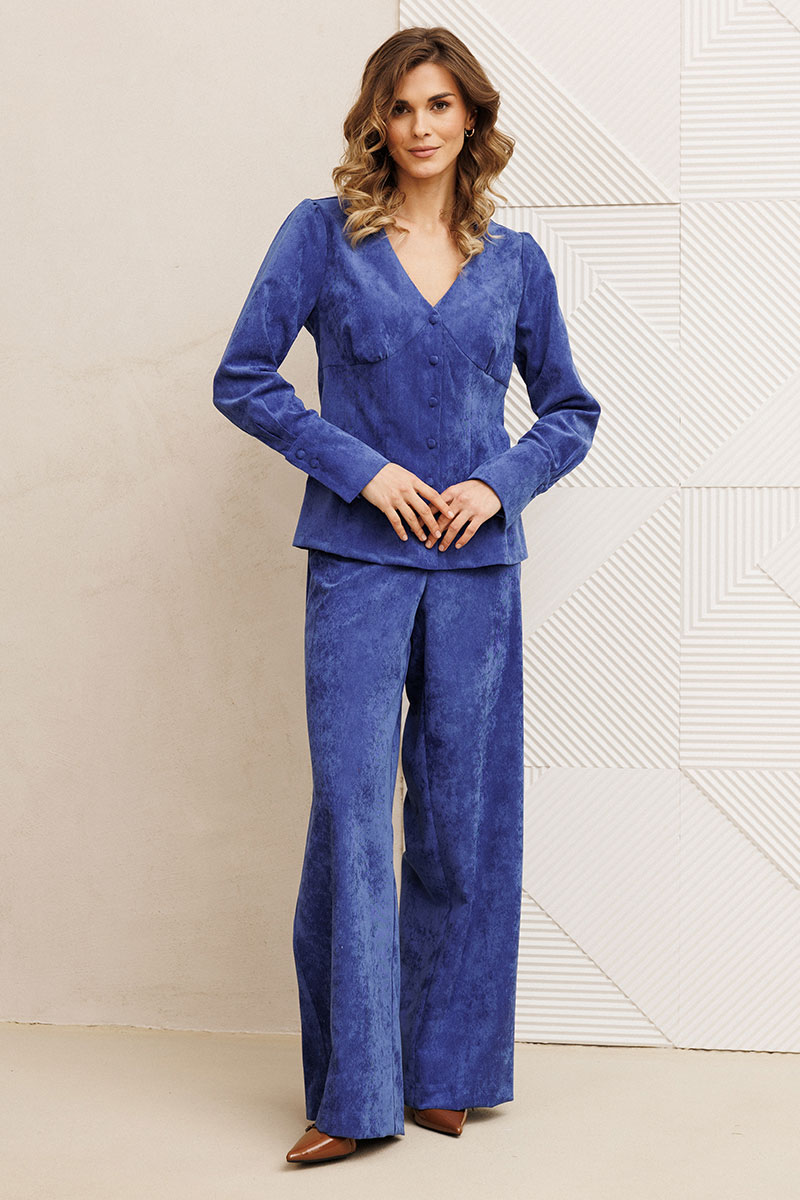 Костюм состоит из блузки и брюк.