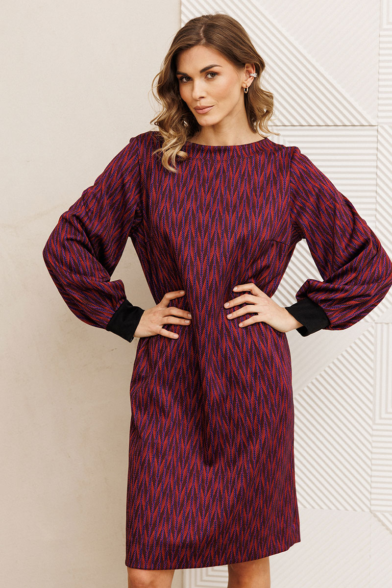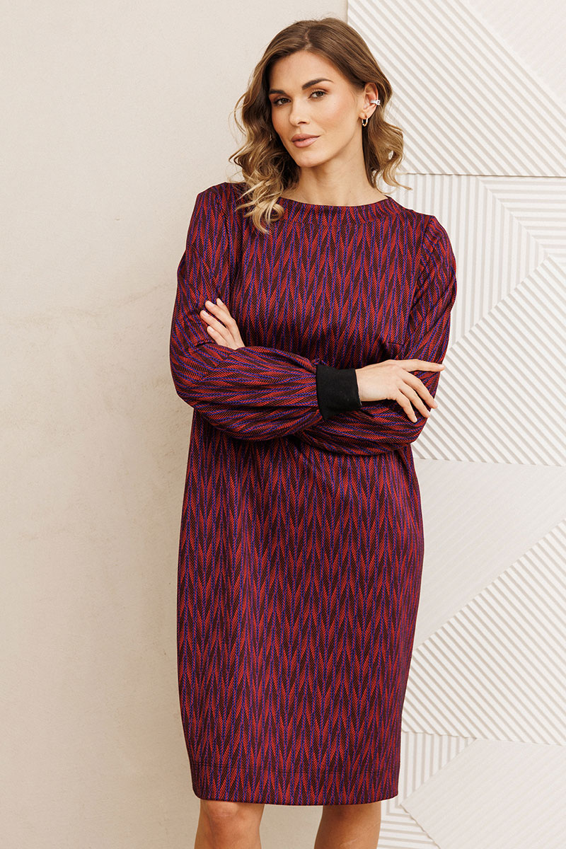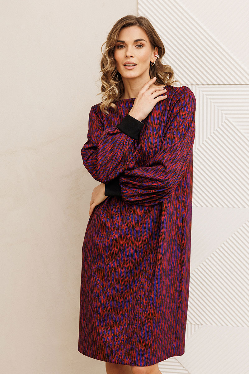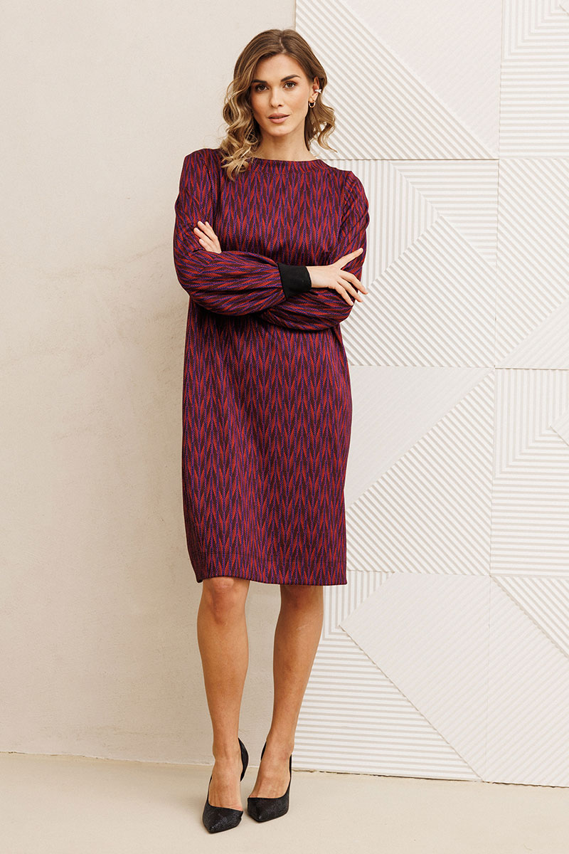 Платье от GIZART выполнено из плотного трикотажа, что обеспечивает комфорт и долговечность. Коллекция бренда сочетает стиль и удобство, предлагая платье с прямым силуэтом и длиной миди, идеально подходящее для осенне-зимнего сезона. Оригинальный тигриный принт создает эффектный образ, привлекая внимание. Декоративные складки на манжете придают изысканность, а горловина в виде лодочки подчеркивает женственность. Этот предмет гардероба универсален: его можно носить ежедневно или же выбрать в качестве офисного наряда. Сине-красная цветовая гамма легко комбинируется с аксессуарами, позволяя создавать разнообразные образы.