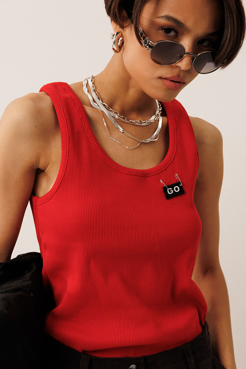 Топ с круглым вырезом без рукавов - самая универсальная вещь для вашего гардероба! Собирайте бесконечное количество стильных луков вместе с GO!
